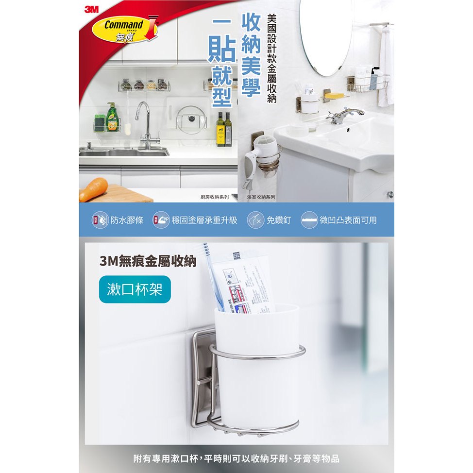 3M 無痕 美國設計款金屬防水收納系列-漱口杯架3M 無痕 美國設計款金屬防水收納系列-漱口杯架Hooks3M 授權官方旗艦館