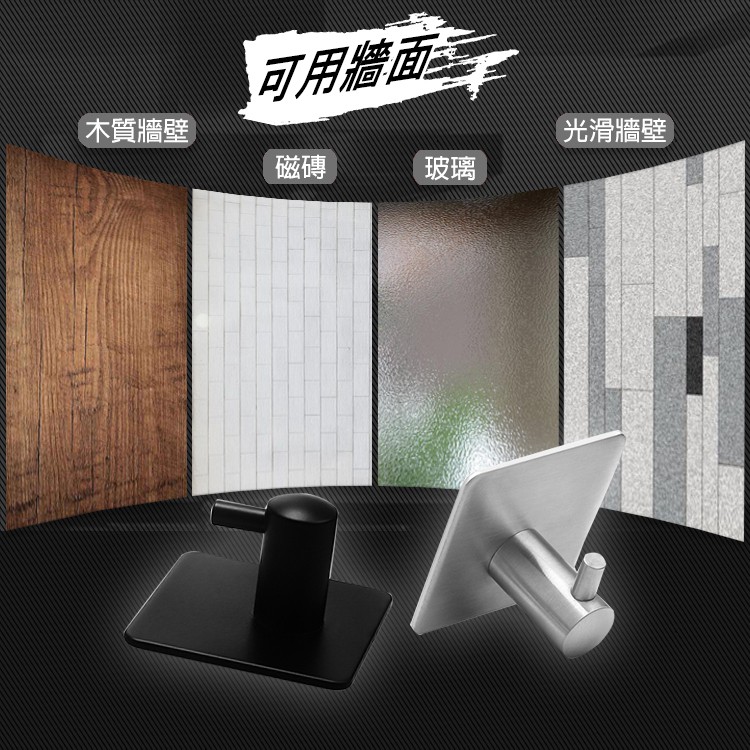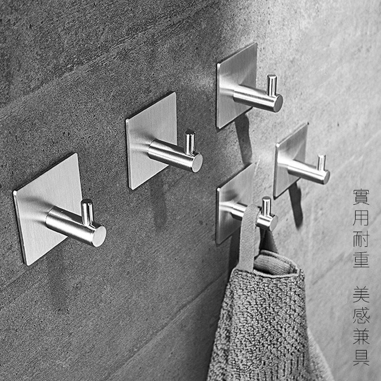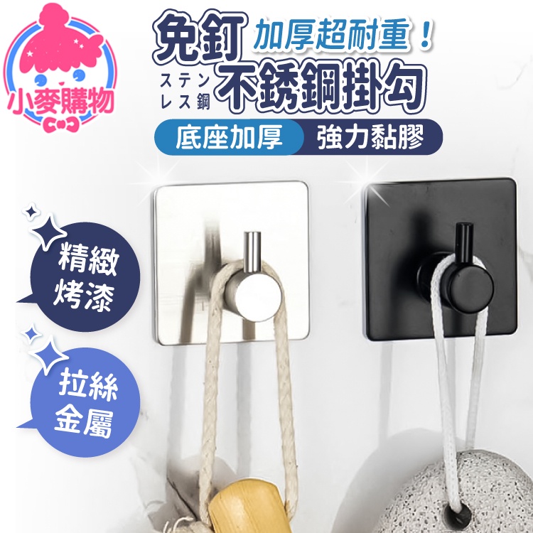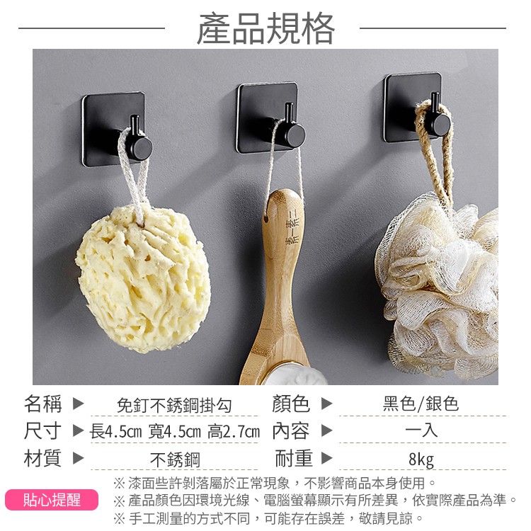 免釘不銹鋼掛勾 防水掛勾 方形掛鉤 不鏽鋼掛勾 金屬鈎 廚具鈎 掛鈎 鑰匙鈎 免釘掛鈎 掛勾貼【小麥購物】【Y151】銀色|黑色Hooks 小麥購物