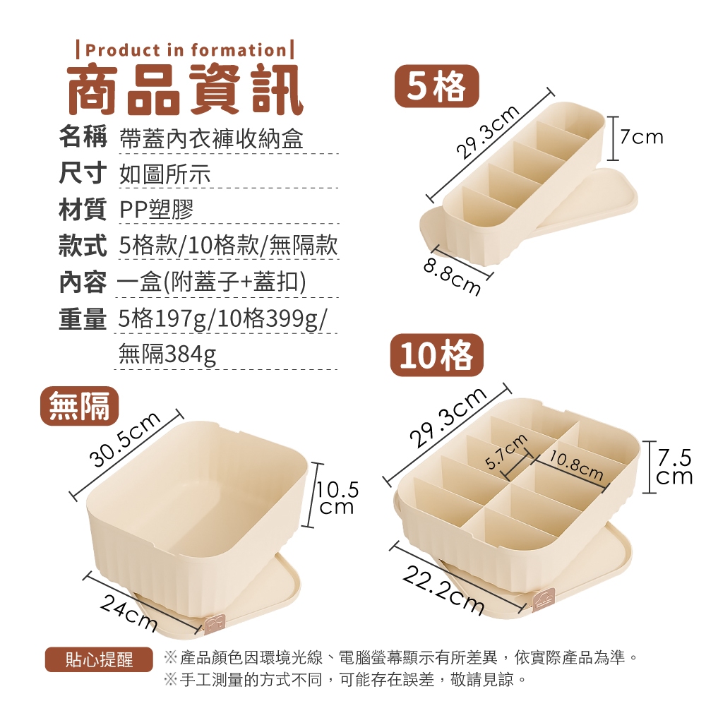帶蓋內衣褲收納盒 奶油風 衣物分格收納盒 襪子收納盒 內衣收納 內褲收納 收納盒 收納 襪子收納【小麥購物】【C557】5格襪子|10格內褲|無隔Wardrobe Organizers 小麥購物