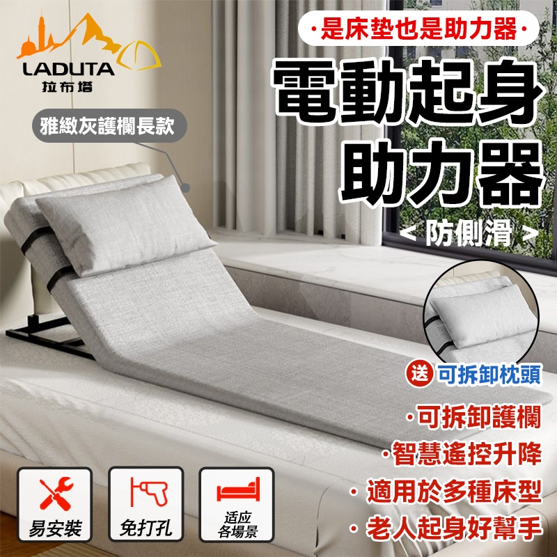 【LADUTA 拉布塔】電動起背器 起床懶人器 電動家用久躺靠 起背起身神器升降床墊雅致灰-長款Mattresses【LADUTA 拉布塔】官方旗艦店