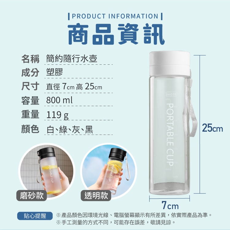 簡約隨行水壺 隨行杯 韓版塑料杯 800ml 水壺 水杯 大容量水杯 透明水杯 磨砂水壺 環保杯【小麥購物】【Y547】透明白|透明黑|透明灰|透明綠|磨砂白|磨砂黑|磨砂灰|磨砂綠Cups, Mugs & Glasses 小麥購物