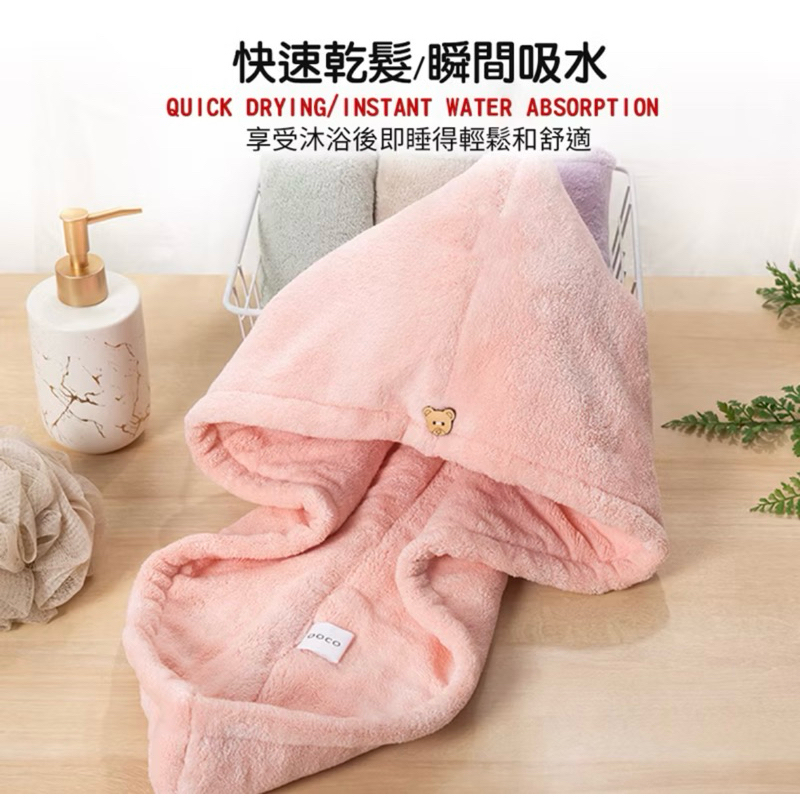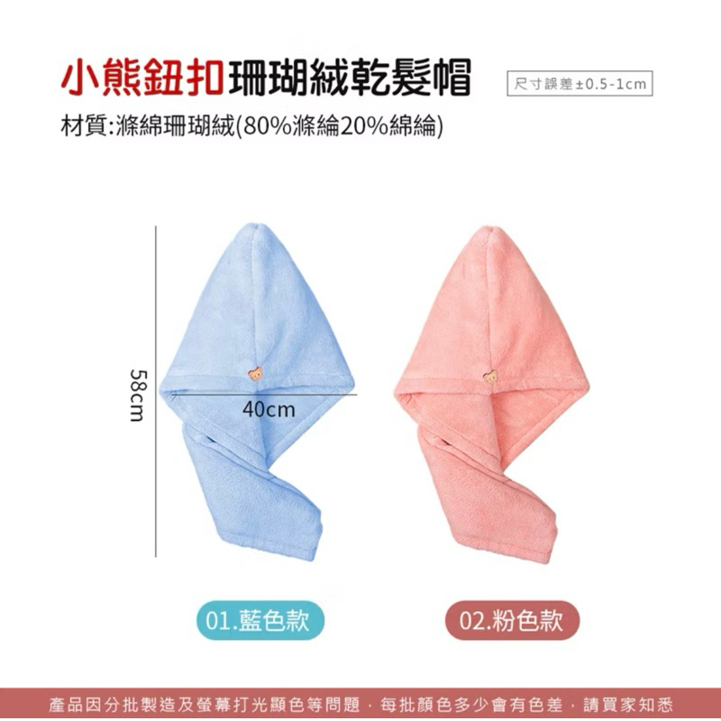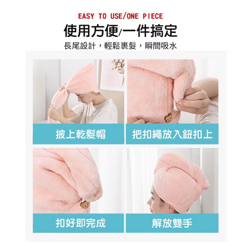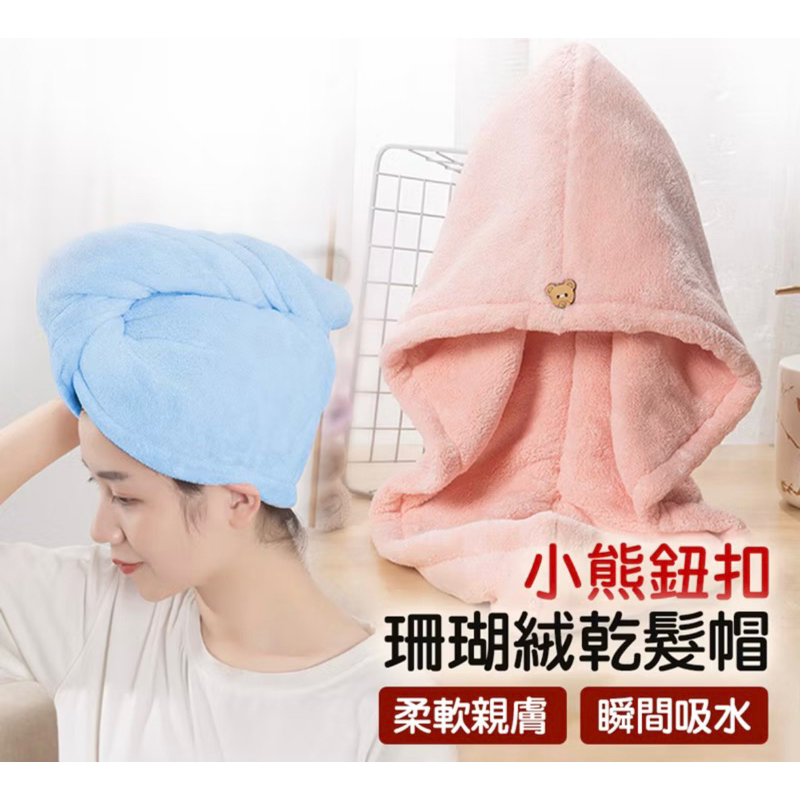 珊瑚絨乾髮帽 小熊鈕扣乾髮帽 乾髮巾 乾髮帽 快速乾髮 珊瑚絨 包髮巾 包頭巾 速乾吸水 浴帽 超柔軟小熊鈕扣-藍色|小熊鈕扣-粉色Towels & BathrobesAQUASTAR 水之星游泳用品
