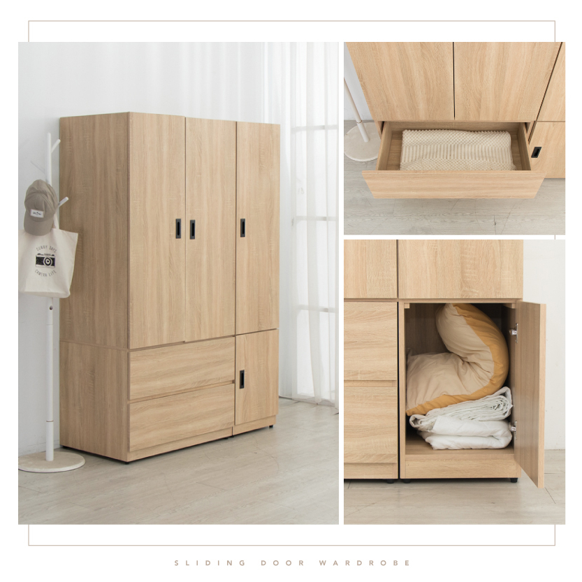 【IDEA】MIT2.5尺拉門收納衣櫃加側邊櫃組合(2色)暖棕原木|北歐橡木Wardrobes【IDEA】視覺概念
