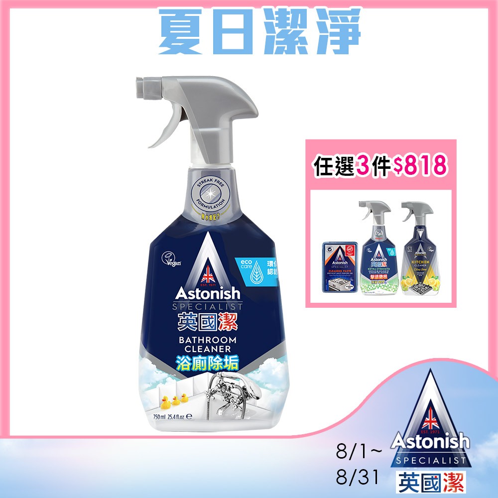 【Astonish】英國潔抑菌除污浴廁清潔劑1瓶(750mlx1)新舊包裝隨機出貨水垢 尿垢 皂垢 去汙