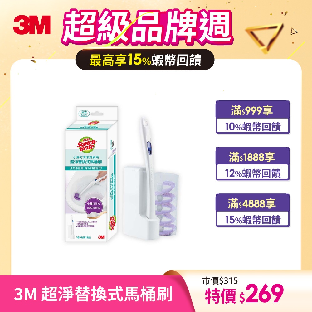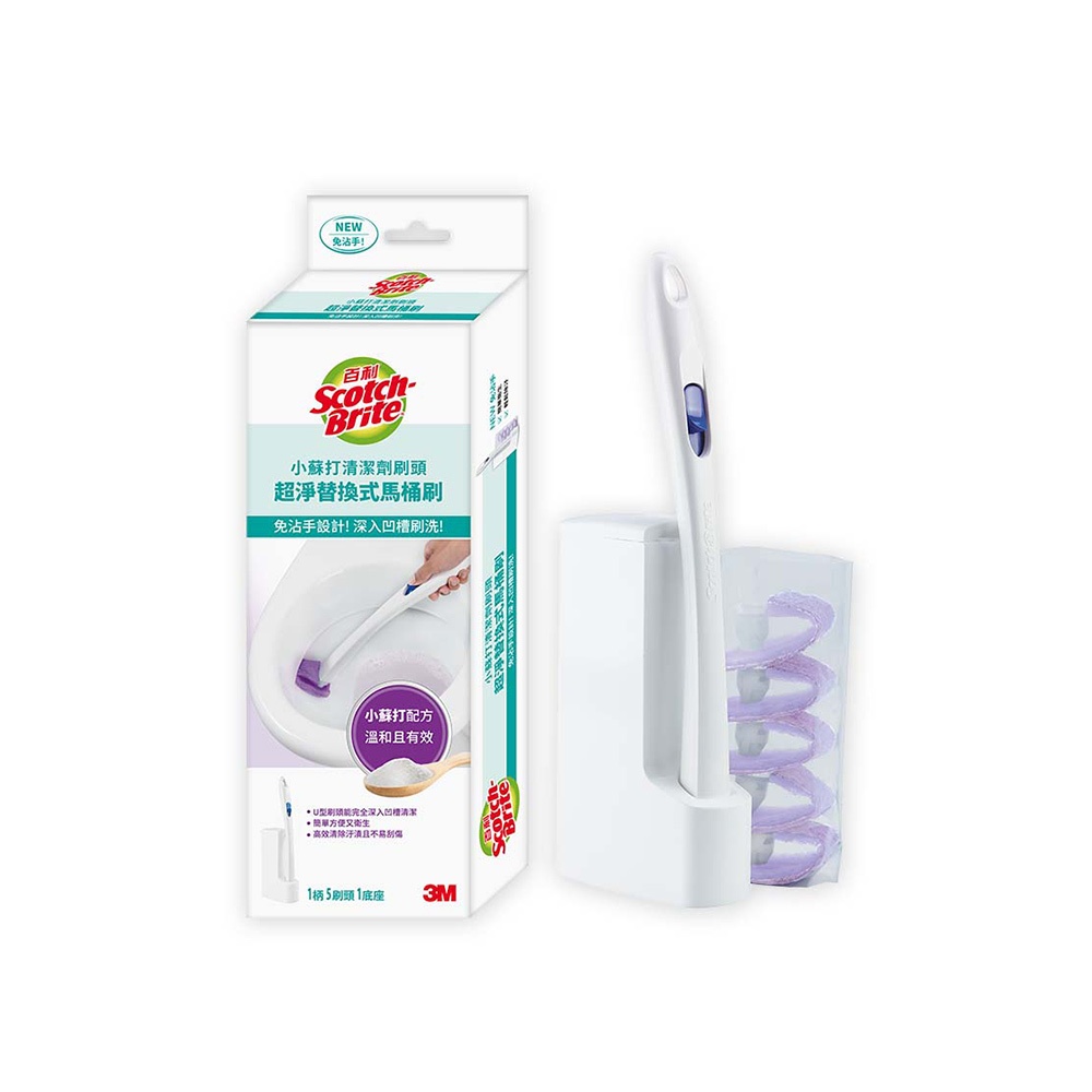 3M 百利超淨替換式馬桶刷-小蘇打清潔配方(1柄+5刷頭+1底座)補充包|馬桶刷Cleaning Brushes3M 授權官方旗艦館
