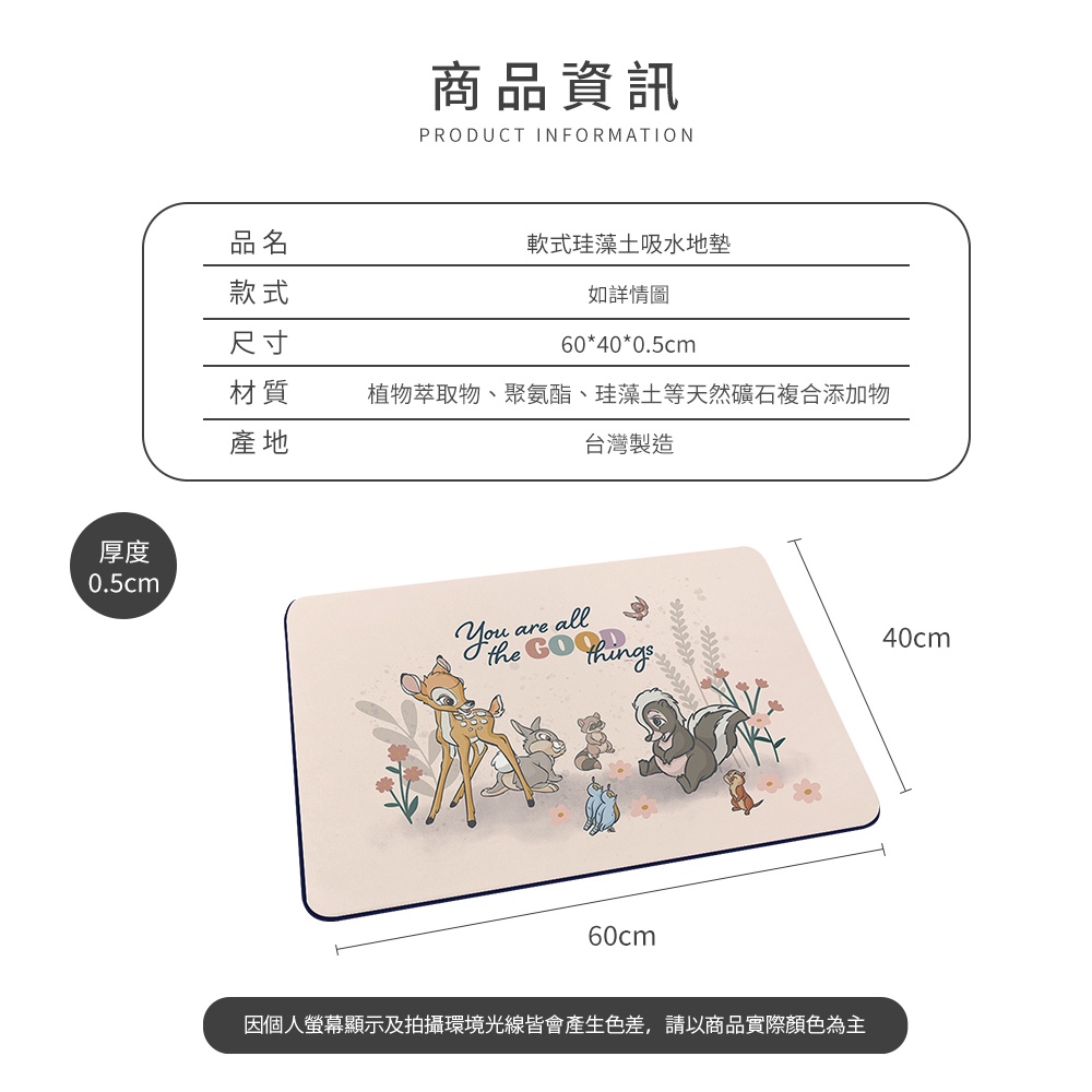 迪士尼 Disney 歡樂動物系列 軟式珪藻土地墊60×40 瑪麗貓 小鹿斑比 小飛象 桑普 獅子王 【5ip8】線條斑比|花朵瑪麗貓|條紋小飛象|歡笑斑比|歡笑小飛象|森林辛巴|森林瑪麗貓|線條桑普Carpets & Rugs5IP8居家生活館