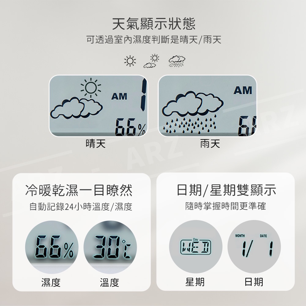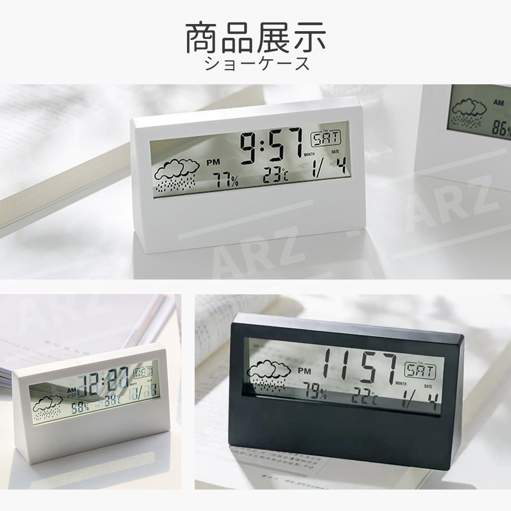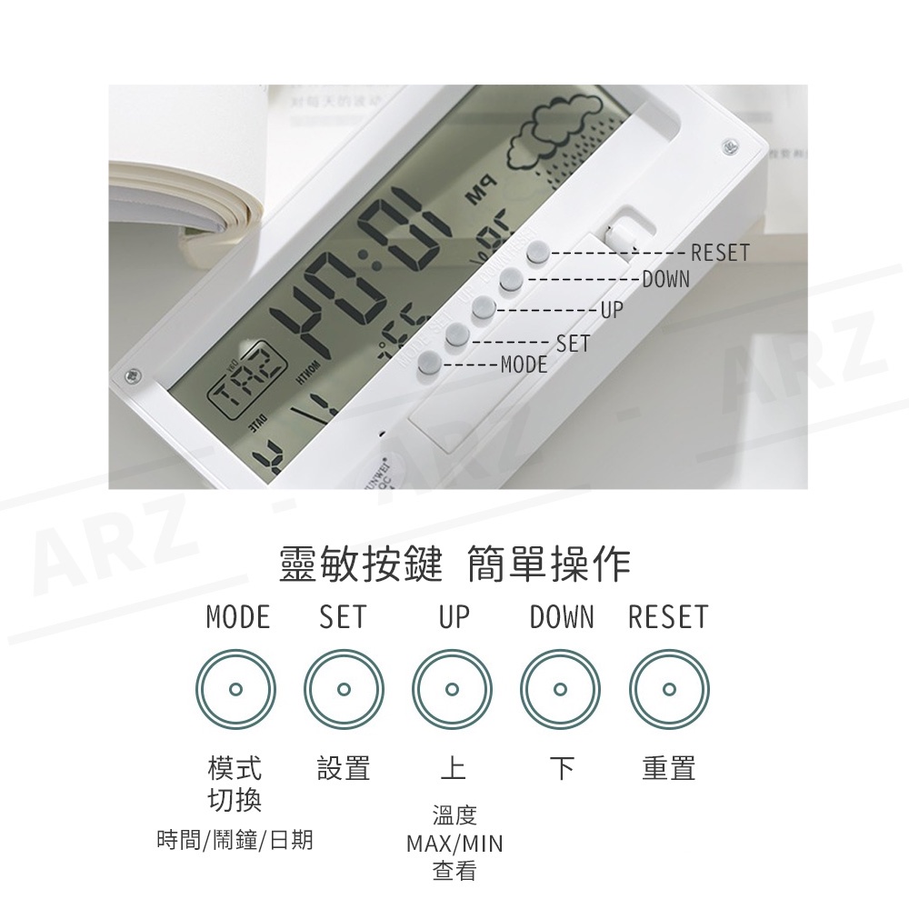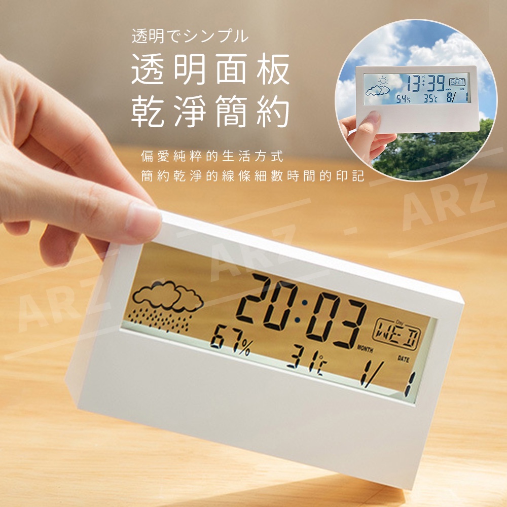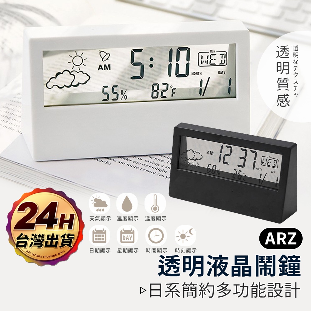 透明液晶鬧鐘【ARZ】【D123】LCD 透明電子鐘 溫度鐘 濕度電子鐘 透明時鐘 智能鬧鐘 日系時鐘 液晶時鐘 鬧鐘白色透明款|黑色透明款ClocksARZ行動商城
