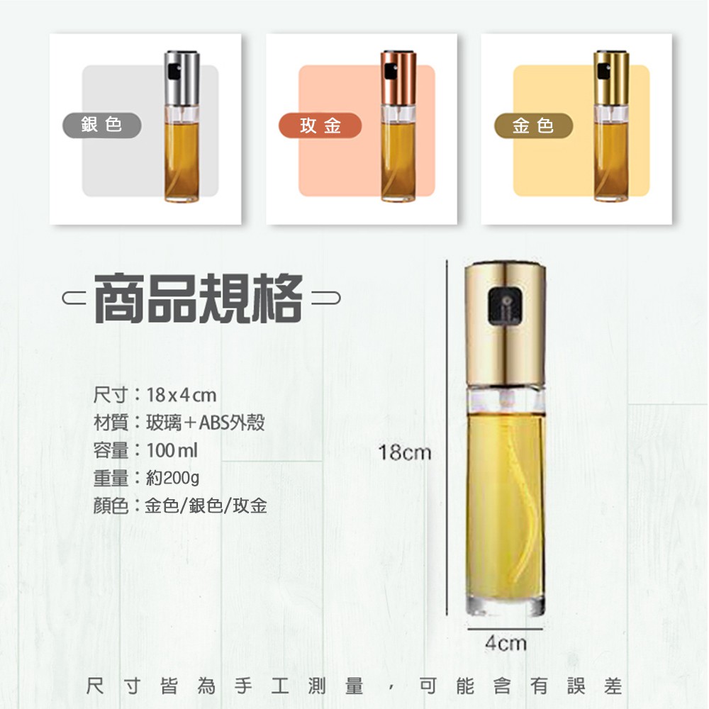 直筒玻璃噴霧瓶【ARZ 實拍現貨】【A081】氣炸鍋 噴油瓶 油壺 廚房烘焙 玻璃噴瓶 按壓瓶 分裝瓶 噴霧罐 調味料罐玫金|銀色|金色Spatulas & Cooking TweezersARZ行動商城