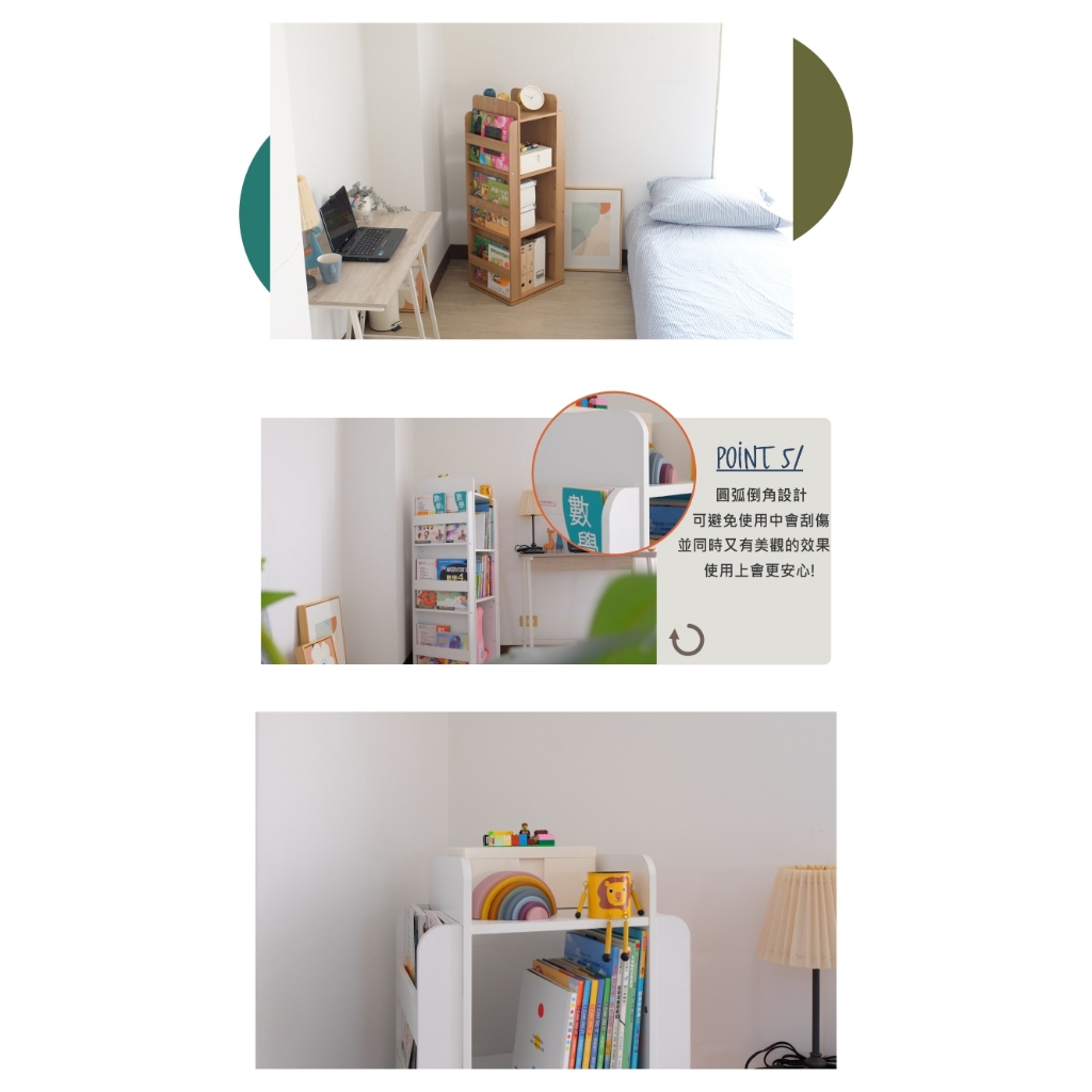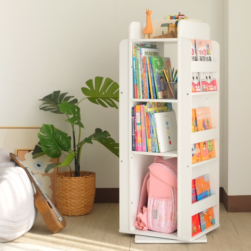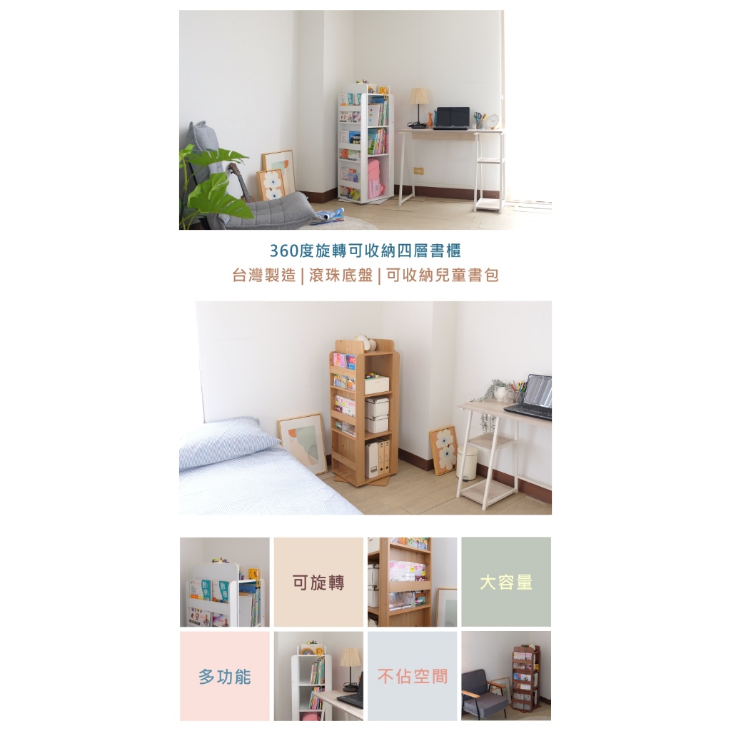 EASY HOME|360°四層旋轉收納書櫃- 2510 可收納書包-三色可選 旋轉書櫃 旋轉書架 書包收納 兒童書櫃胡桃木色|經典白色|北歐原木色Shelves & Racks《EasyHome居家逸品生活館》