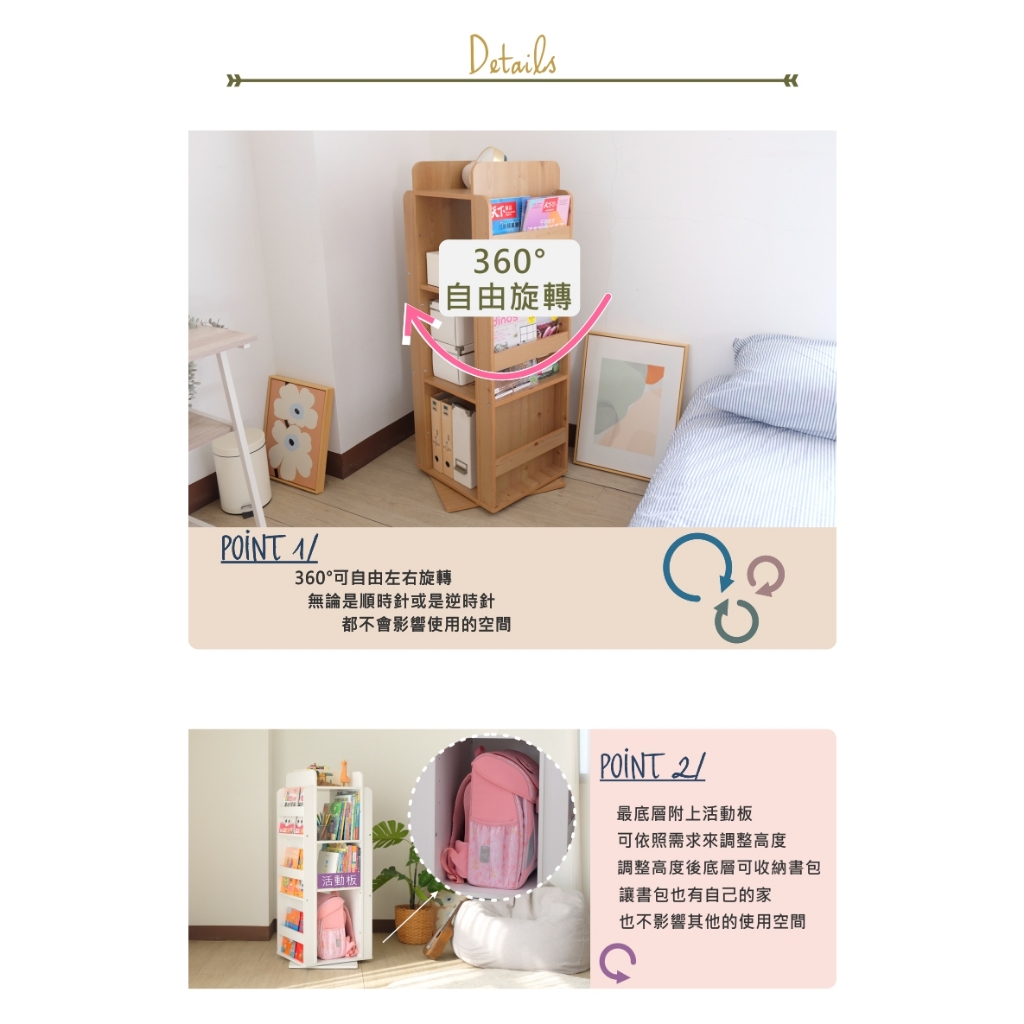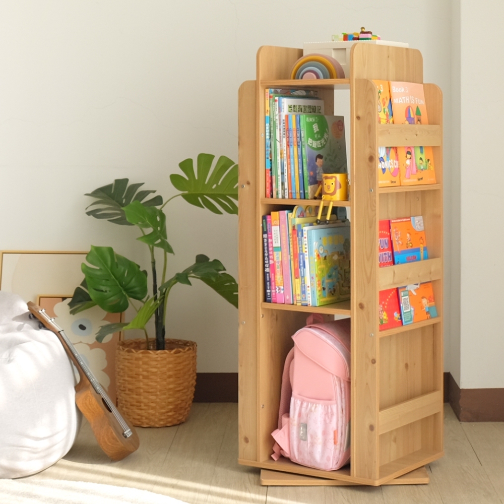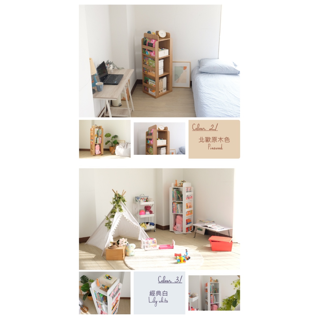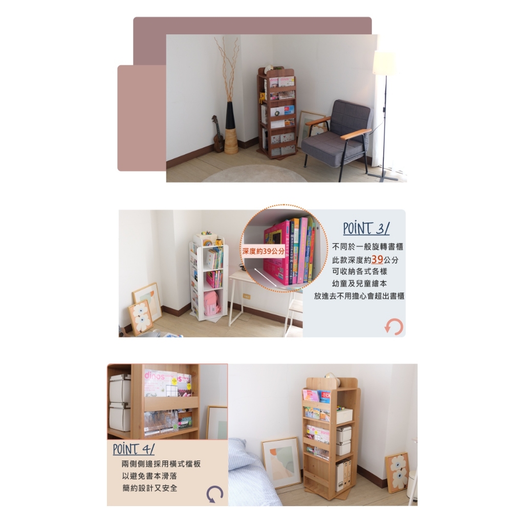 EASY HOME|360°四層旋轉收納書櫃- 2510 可收納書包-三色可選 旋轉書櫃 旋轉書架 書包收納 兒童書櫃胡桃木色|經典白色|北歐原木色Shelves & Racks《EasyHome居家逸品生活館》