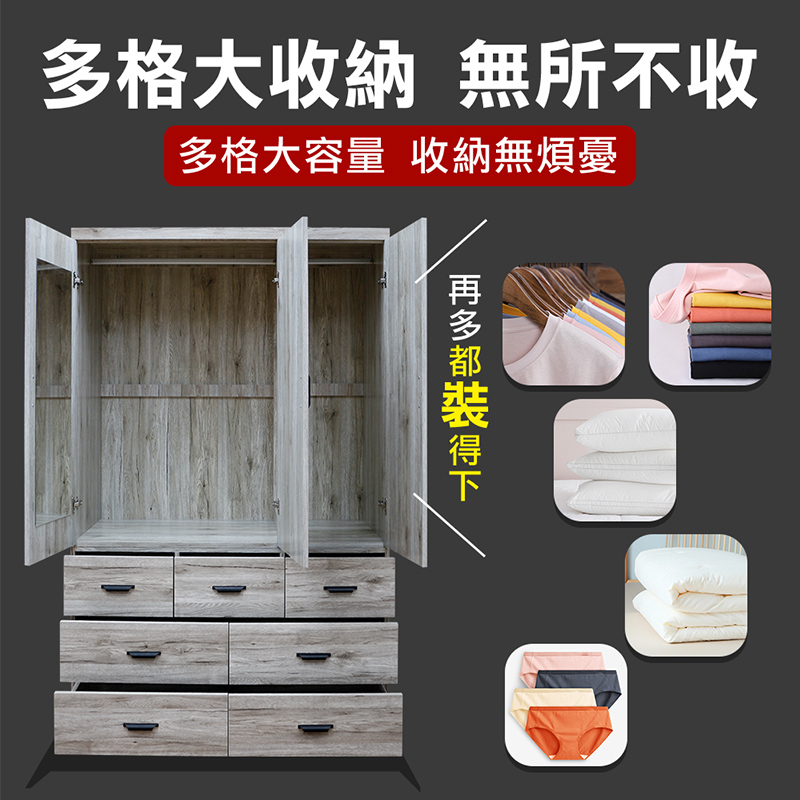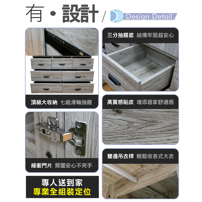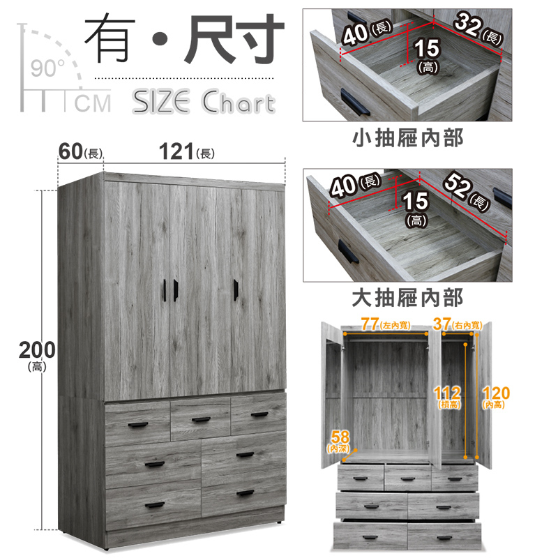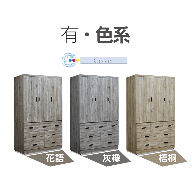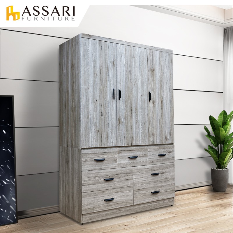 ASSARI-久美4尺雙吊七抽木芯板衣櫃(長121x寬60x高200cm)花語|灰橡|梧桐WardrobesASSARI 鑫億家具