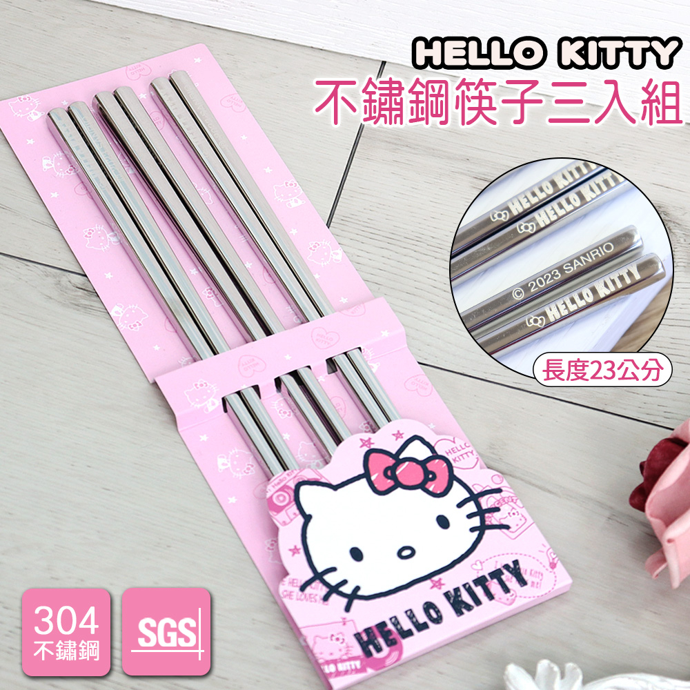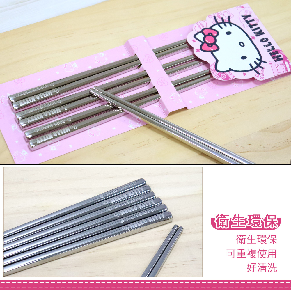 【HELLO KITTY】不銹鋼筷子組 (三雙入)【HELLO KITTY】不銹鋼筷子組 (三雙入)Cutleries【Hello生活館】