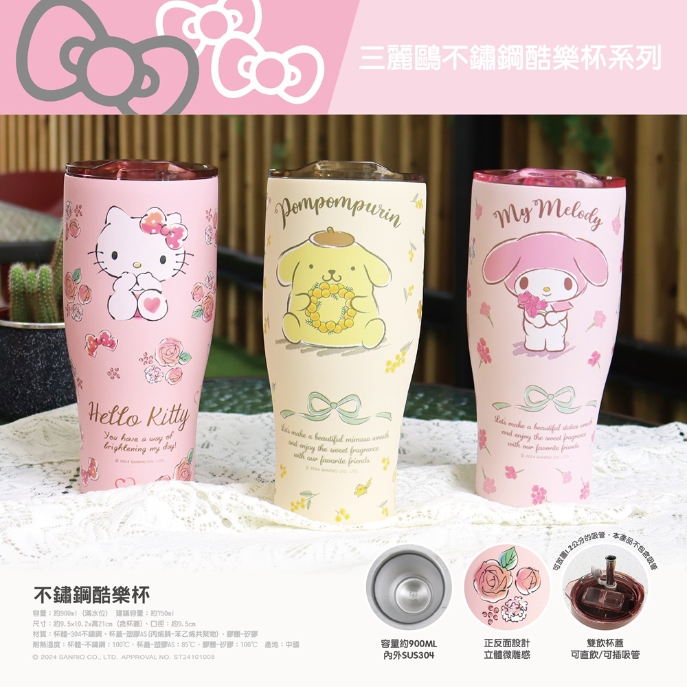 【SANRIO 三麗鷗】不鏽鋼真空保溫保冰酷樂杯 冰霸杯900ml -HELLO KITTY/美樂蒂/布丁狗HELLO KITTY|布丁狗|美樂蒂|專用TRITAN密封杯蓋-霧黑|專用TRITAN密封杯蓋-霧白Water Bottles & Accessories【Hello生活館】