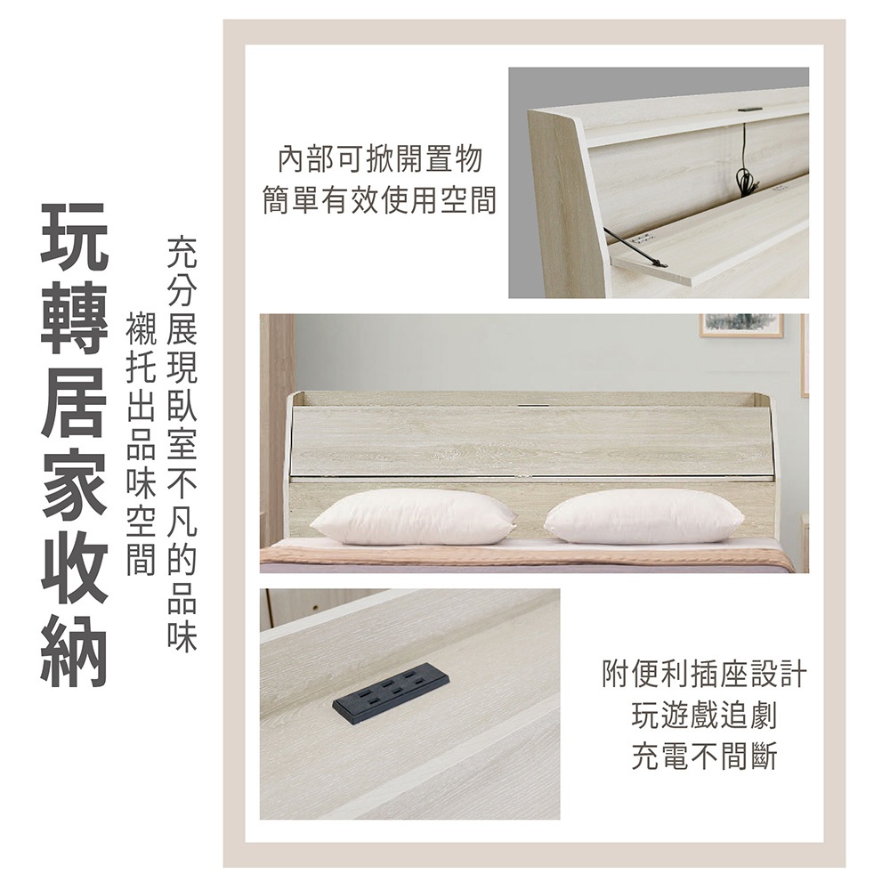ASSARI-瑪卡蓉插座收納床頭箱-雙人5尺雙人5尺|運費請詳閱內文Bed Frames & HeadboardsASSARI 鑫億家具