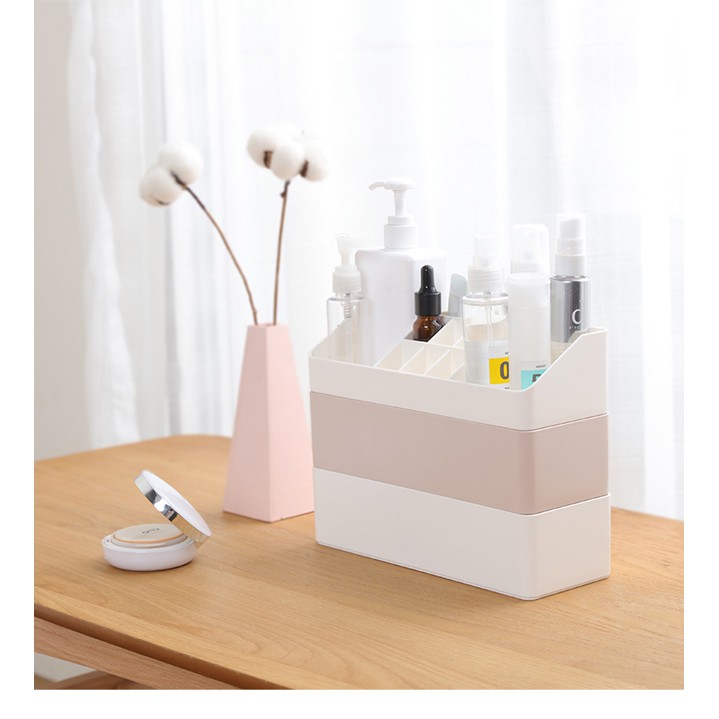 【IDEA】輕日系可疊加口紅化妝品文具三層桌上收納盒粉色|綠色|灰色Desk Organizers【IDEA】視覺概念