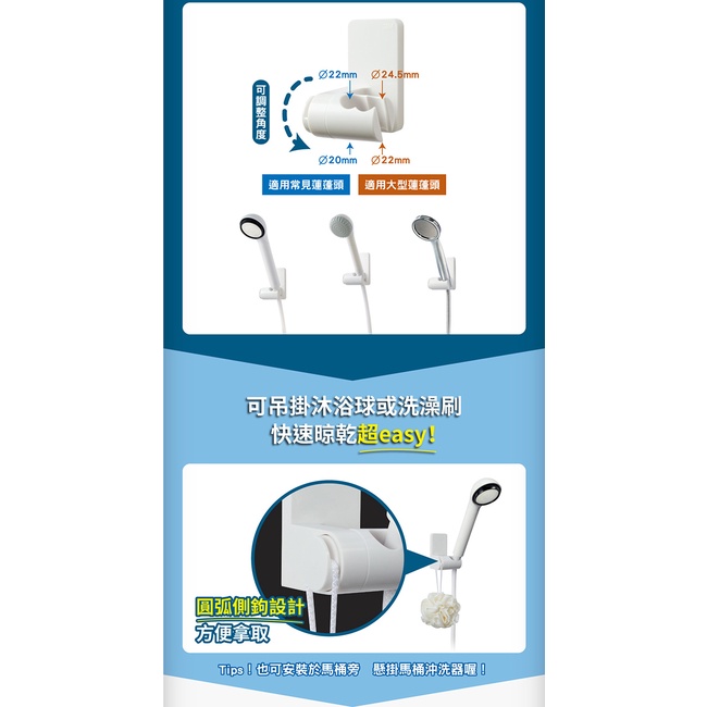 3M 無痕 極淨防水收納-浴室免鑽 蓮蓬頭架