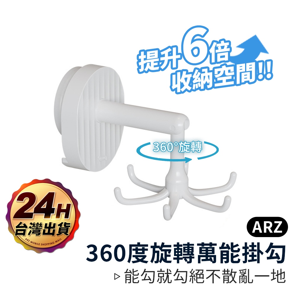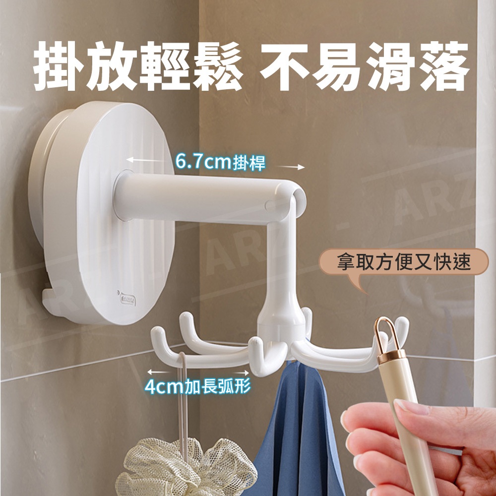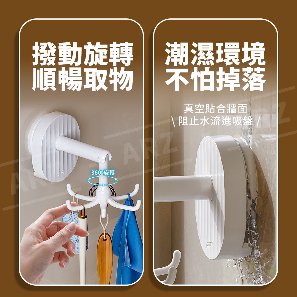 太力 旋轉掛勾 無痕強力吸盤【ARZ】【E236】廚房掛鉤 六爪掛勾 廚具吊掛收納 無痕掛勾 壁掛勾 浴室掛鉤 免釘掛勾單入裝|2入裝HooksARZ行動商城