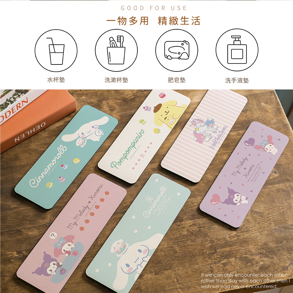 三麗鷗 Sanrio 軟式珪藻土洗漱墊 防潮 杯墊 瀝水 吸水墊 浴室收納 SGS檢驗不含石綿 【5ip8】布丁馬卡龍|綠色布丁狗|雲朵雙子星|條紋雙子星|藍色馬卡龍|藍色大耳狗|甜蜜美時光|快樂酷時光Placemats & Coasters5IP8居家生活館