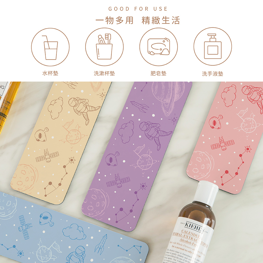 自創宇宙系列 軟式珪藻土洗漱墊 防潮 杯墊 瀝水 硅藻土 吸水墊 浴室收納 牙刷架【5ip8】少女星球|海王宇宙|太陽宇宙|星際宇宙Placemats & Coasters5IP8居家生活館