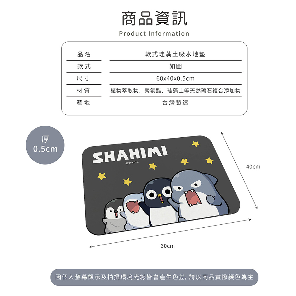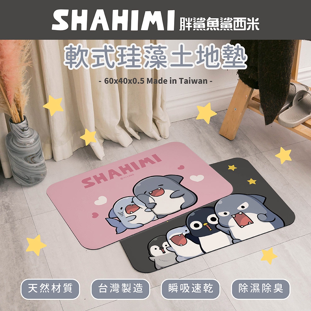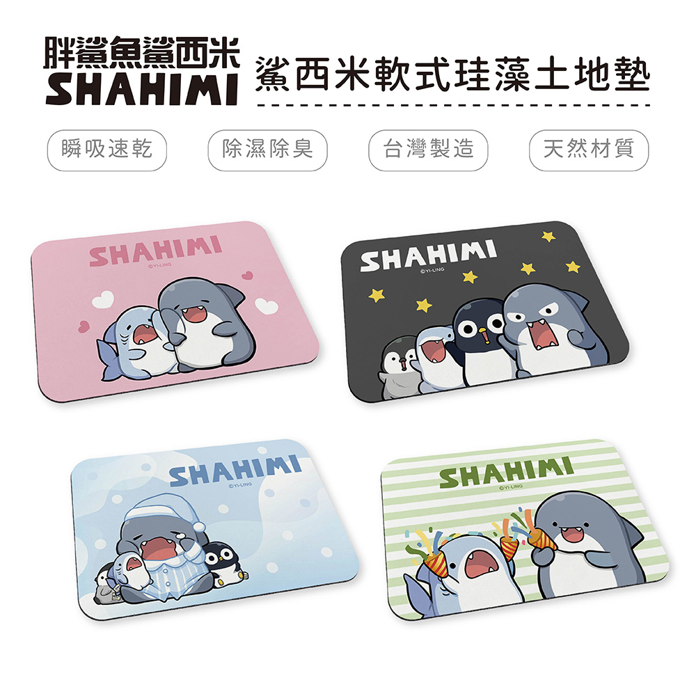 胖鯊魚鯊西米 軟式珪藻土地墊 60×40 硅藻土 腳踏墊 防潮 吸水墊 鯊魚 企鵝 正版授權 台灣製造【5ip8】夜晚閃耀|親密臉頰|睡衣派對|綠色派對Carpets & Rugs5IP8居家生活館