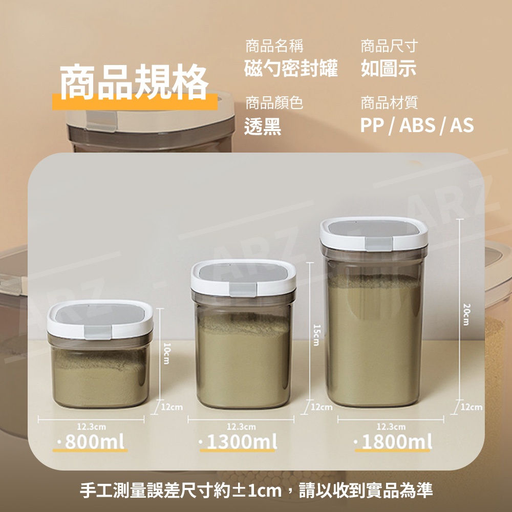 奶粉密封罐 食品密封罐 贈磁吸匙【ARZ】【E250】麵粉收納罐 奶粉罐 分裝盒 密封罐 防潮罐 咖啡罐 保鮮罐 儲物罐800ml|1300ml|1800mlFood StorageARZ行動商城