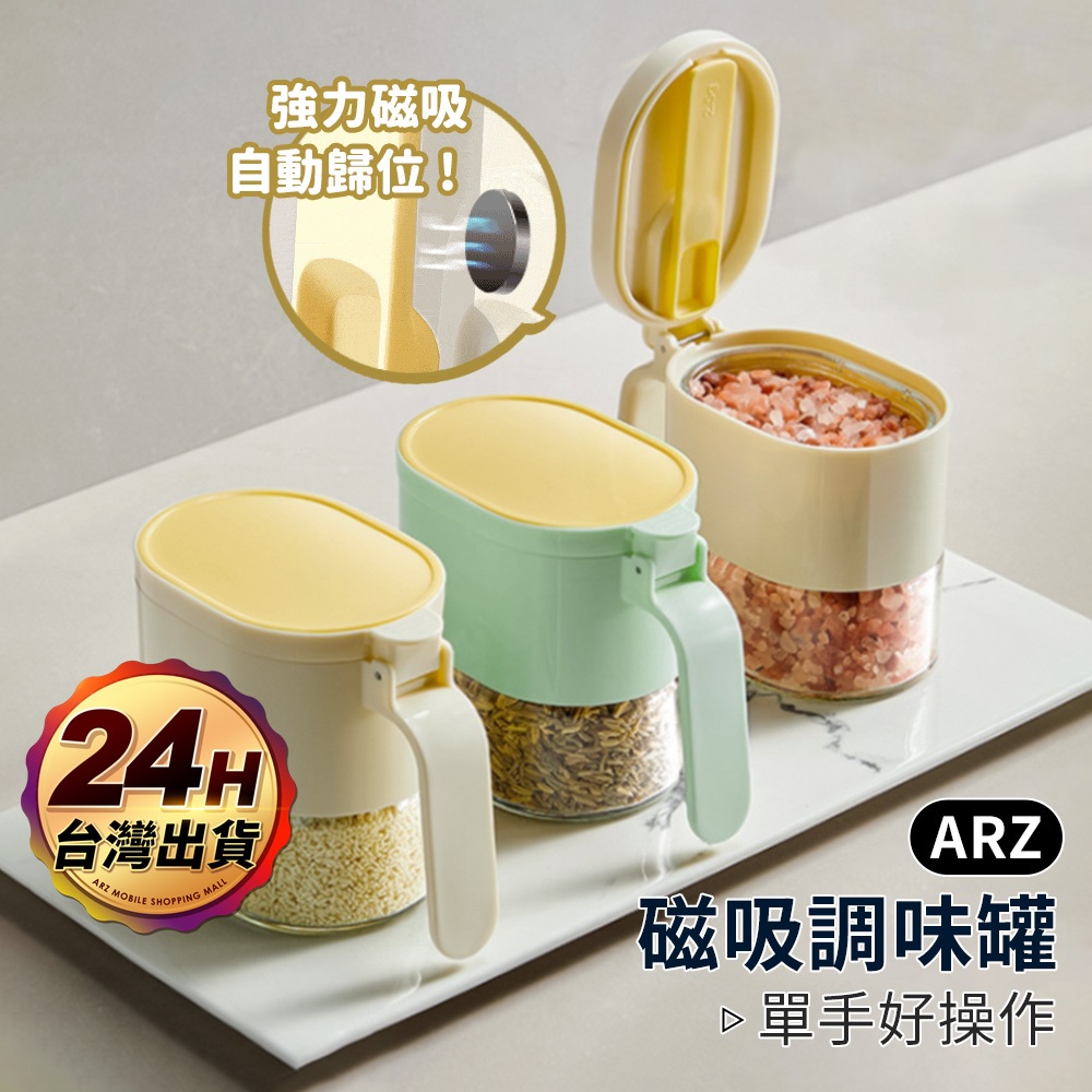 磁吸調味罐 調味盒【ARZ】【F312】玻璃調味罐 防潮 調味料罐 調味瓶 調味料 分裝盒 鹽巴罐 糖 保鮮盒 廚房收納白色|綠色Spatulas & Cooking TweezersARZ行動商城