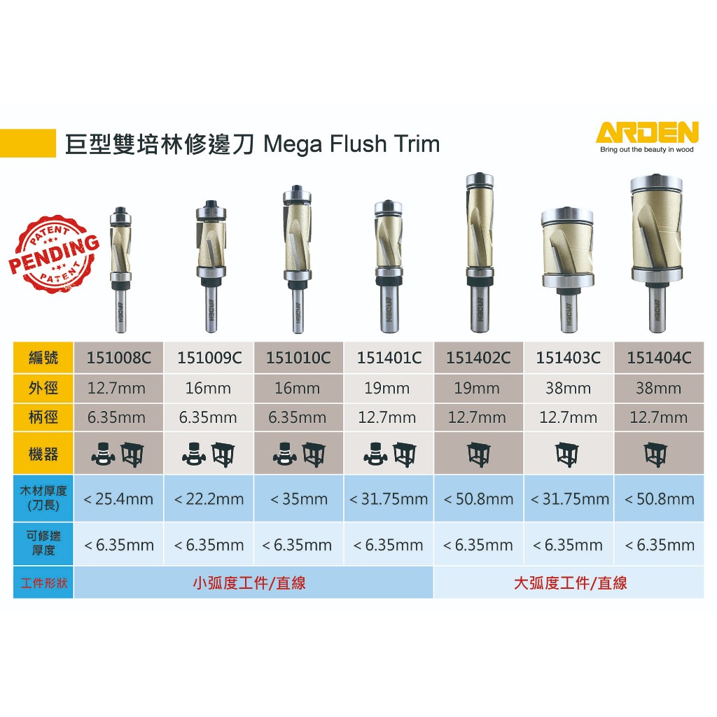 Arden 151008C 巨型雙培林修邊刀 1/2x1x1/4″S