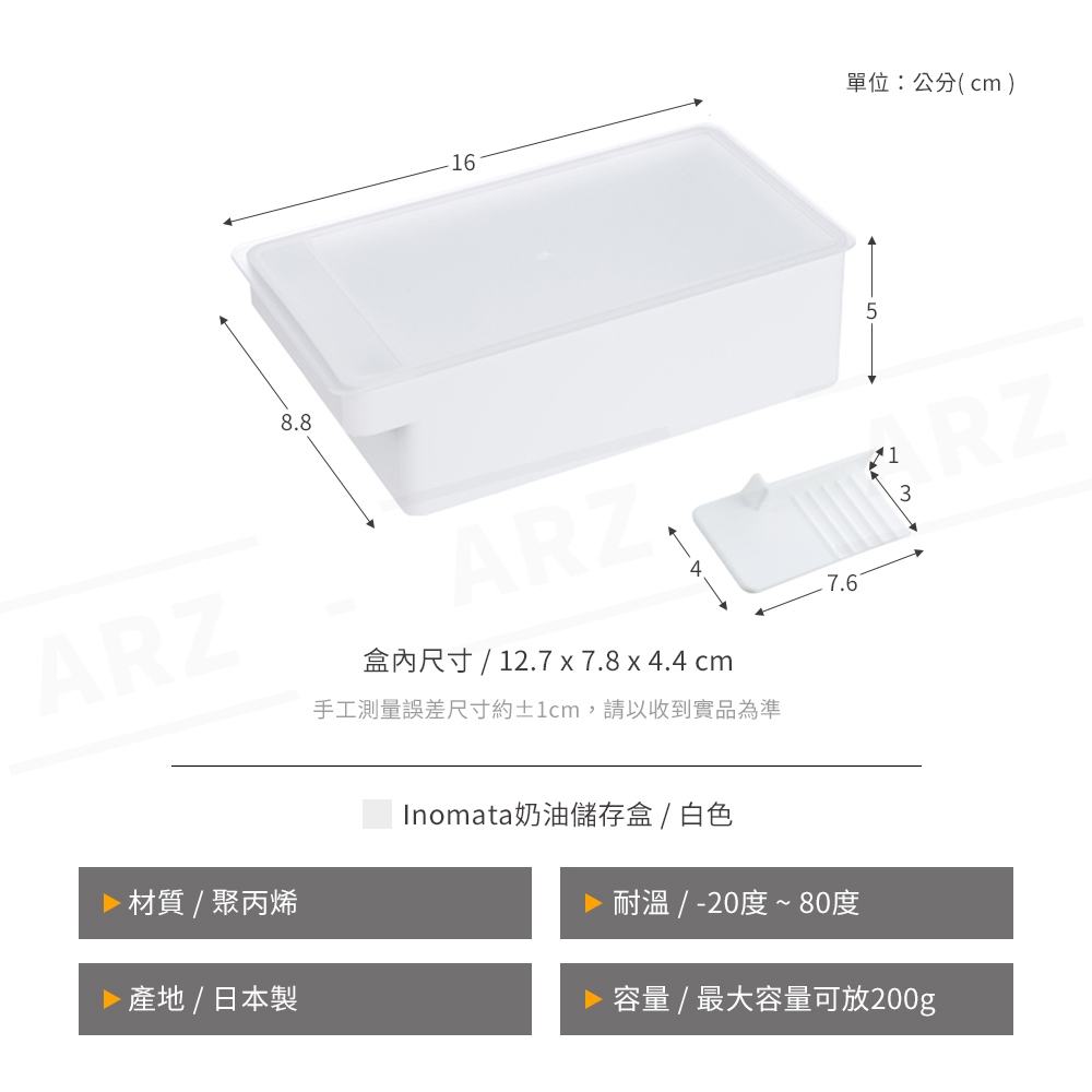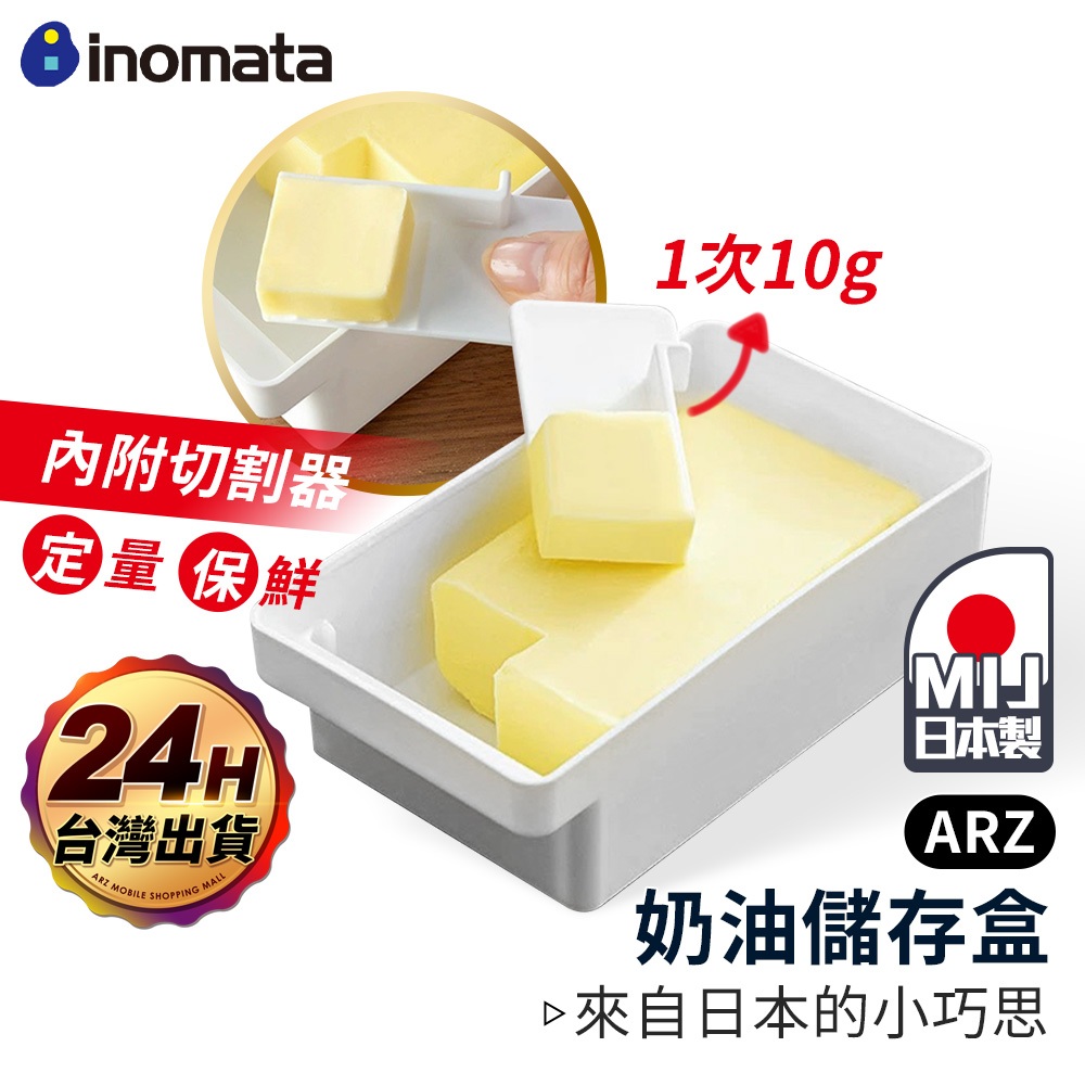 Inomata 奶油盒 贈切割器 日本製【ARZ】【E251】附蓋收納盒 奶油保存盒 奶油切割盒 分裝盒 儲存盒 保鮮盒白色Food StorageARZ行動商城