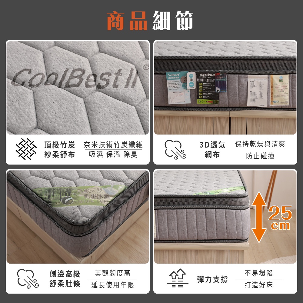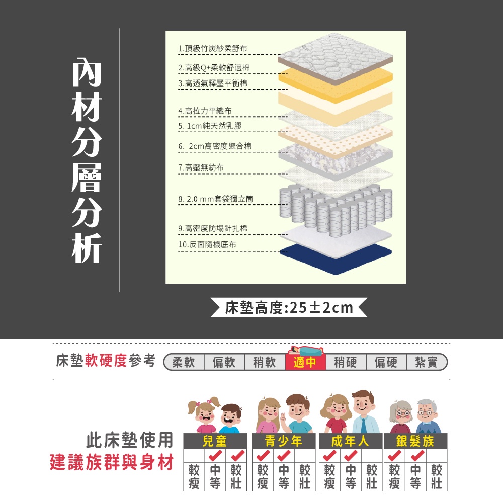 ASSARI-艾斯乳膠竹炭紗硬式三線獨立筒床墊-單人3尺/單大3.5尺/雙人5尺/雙大6尺單人3尺|單大3.5尺|雙人5尺|雙大6尺MattressesASSARI 鑫億家具