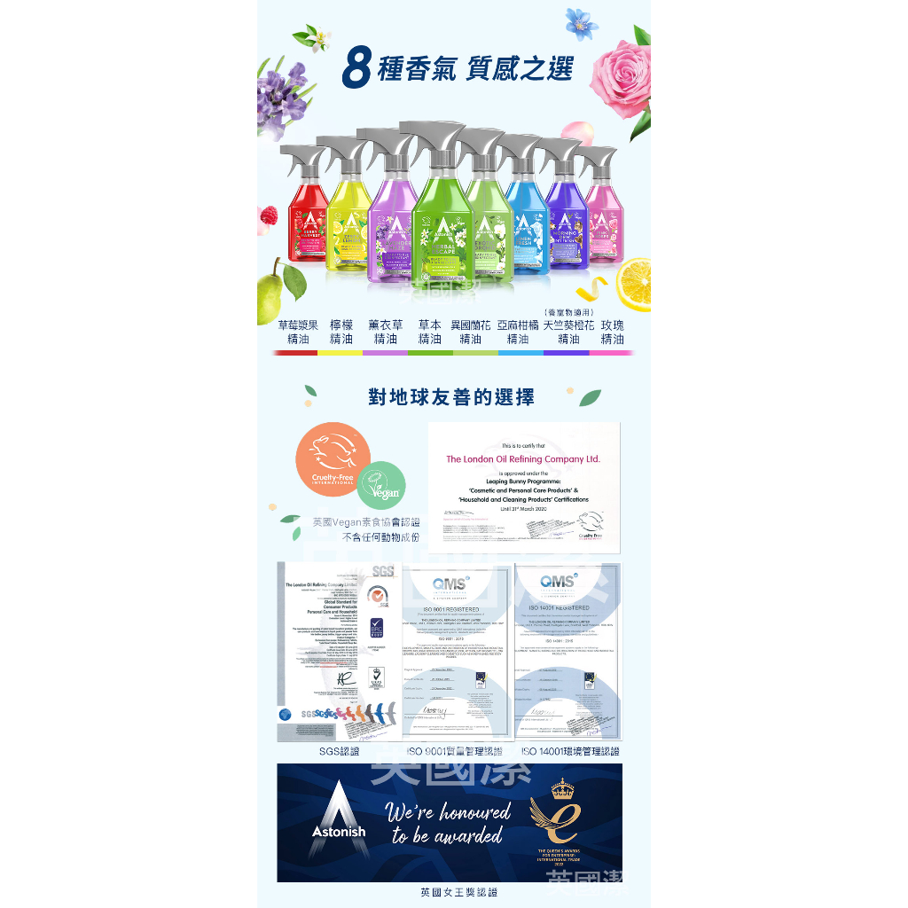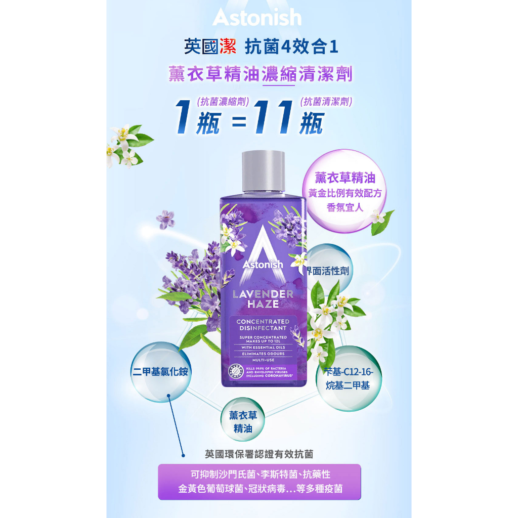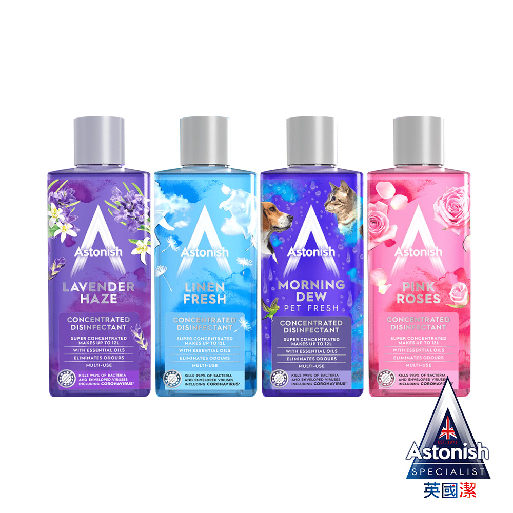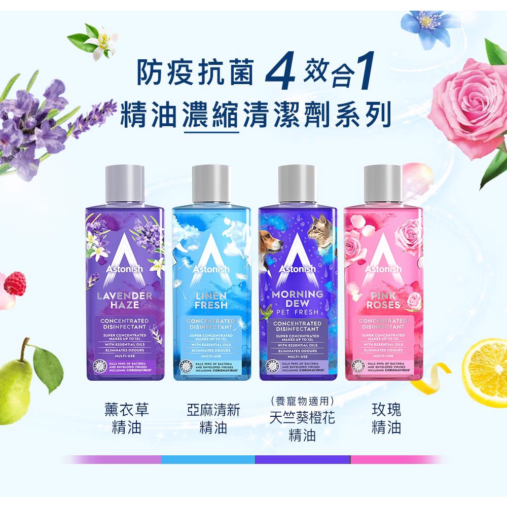 【Astonish】英國潔抗菌四效合一精油清潔劑(濃縮)(300ml/瓶)薰衣草精油(濃縮)1瓶|亞麻柑橘精油(濃縮)1瓶|玫瑰精油(濃縮)1瓶|天竺葵橙花精油(濃縮)1瓶Cleaning AgentsAstonish 英國潔|官方台灣總代理