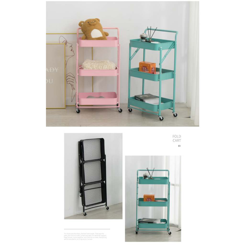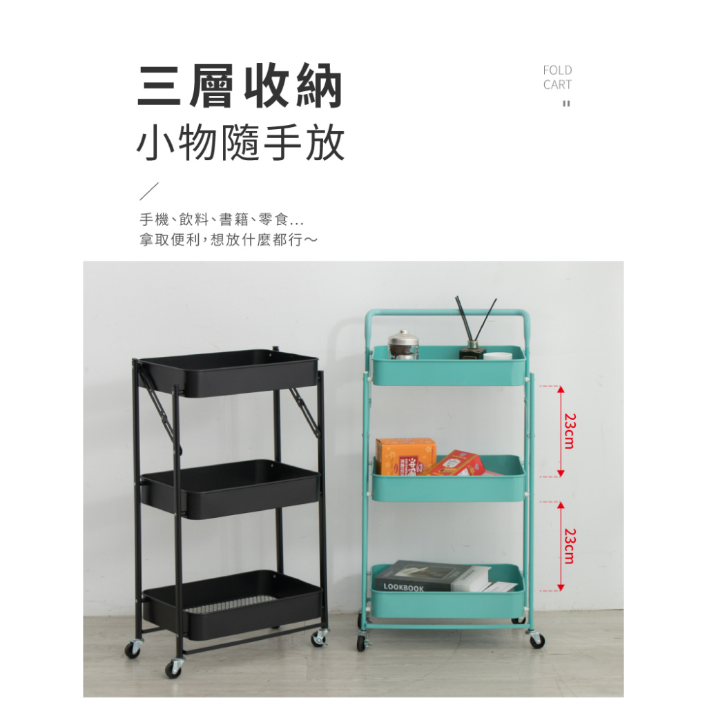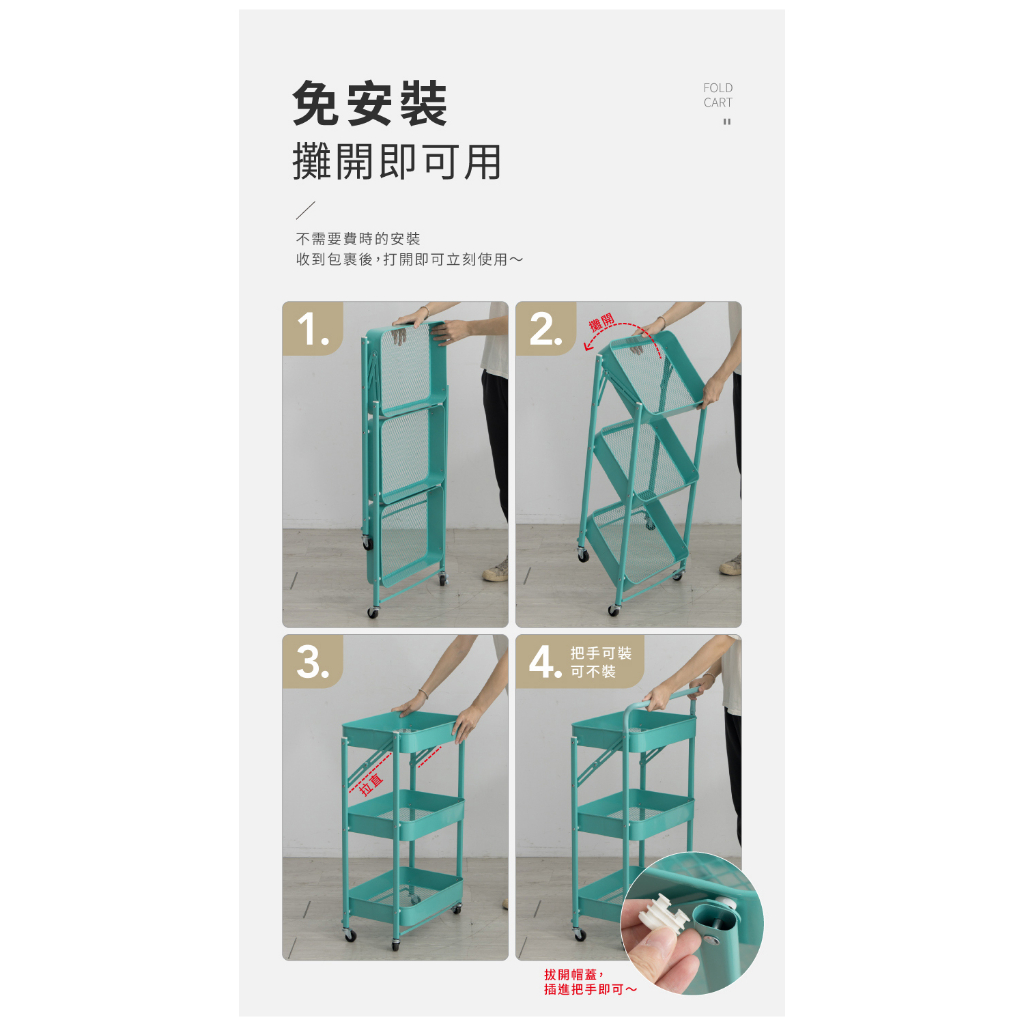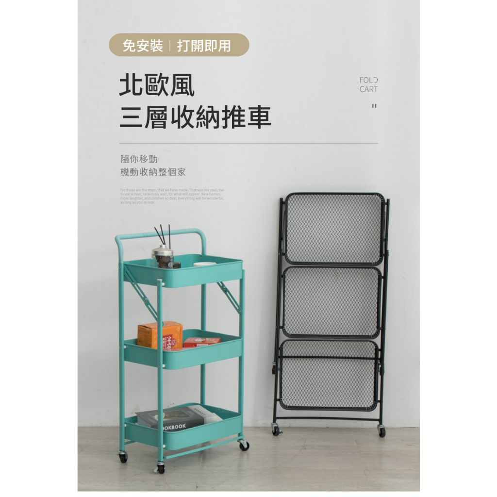 【IDEA】繽紛北歐風三層置物收納手推車(4色/免安裝即用)白色|粉色|黑色|綠色Shelves & Racks【IDEA】視覺概念