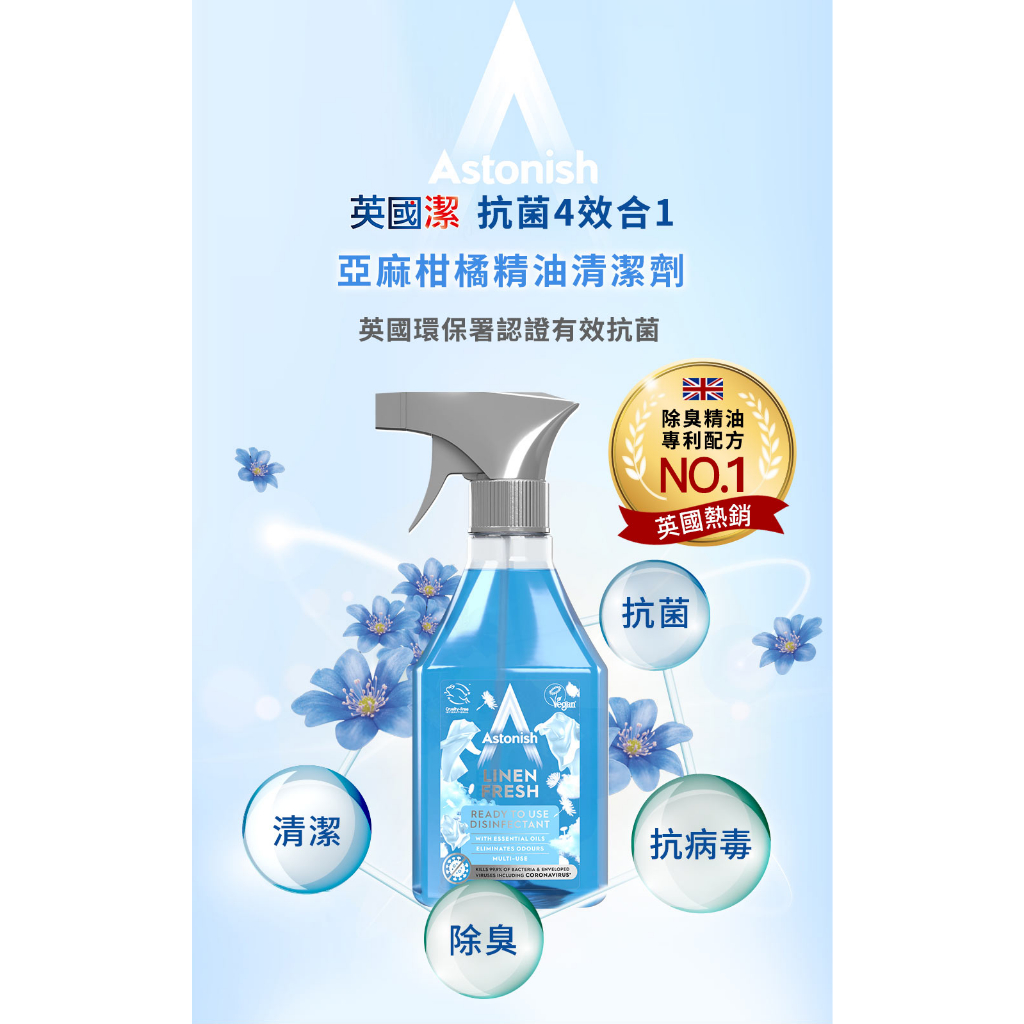 【Astonish】英國潔抗菌4效合1精油清潔劑3瓶組(任選選項組)檸檬x3|天竺葵x3(養寵物適用)|亞麻x3Cleaning AgentsAstonish 英國潔|官方台灣總代理