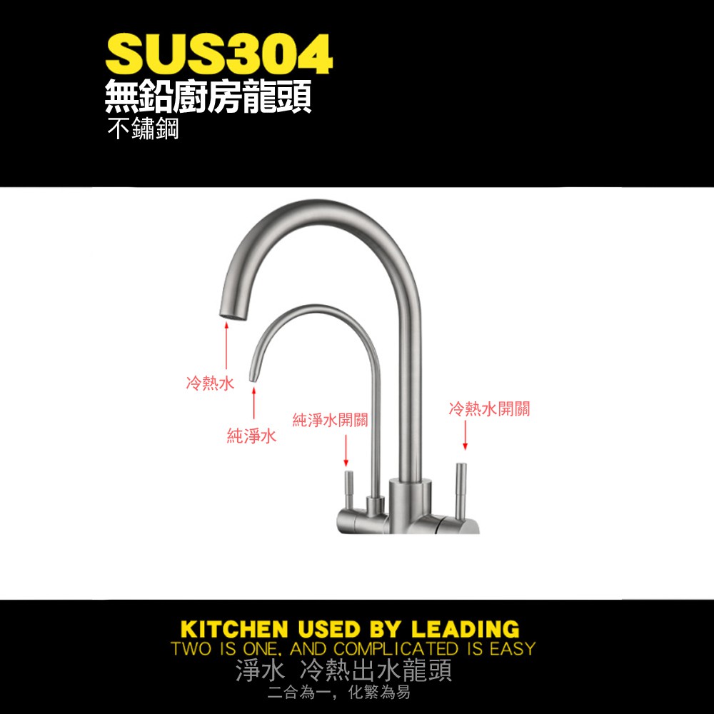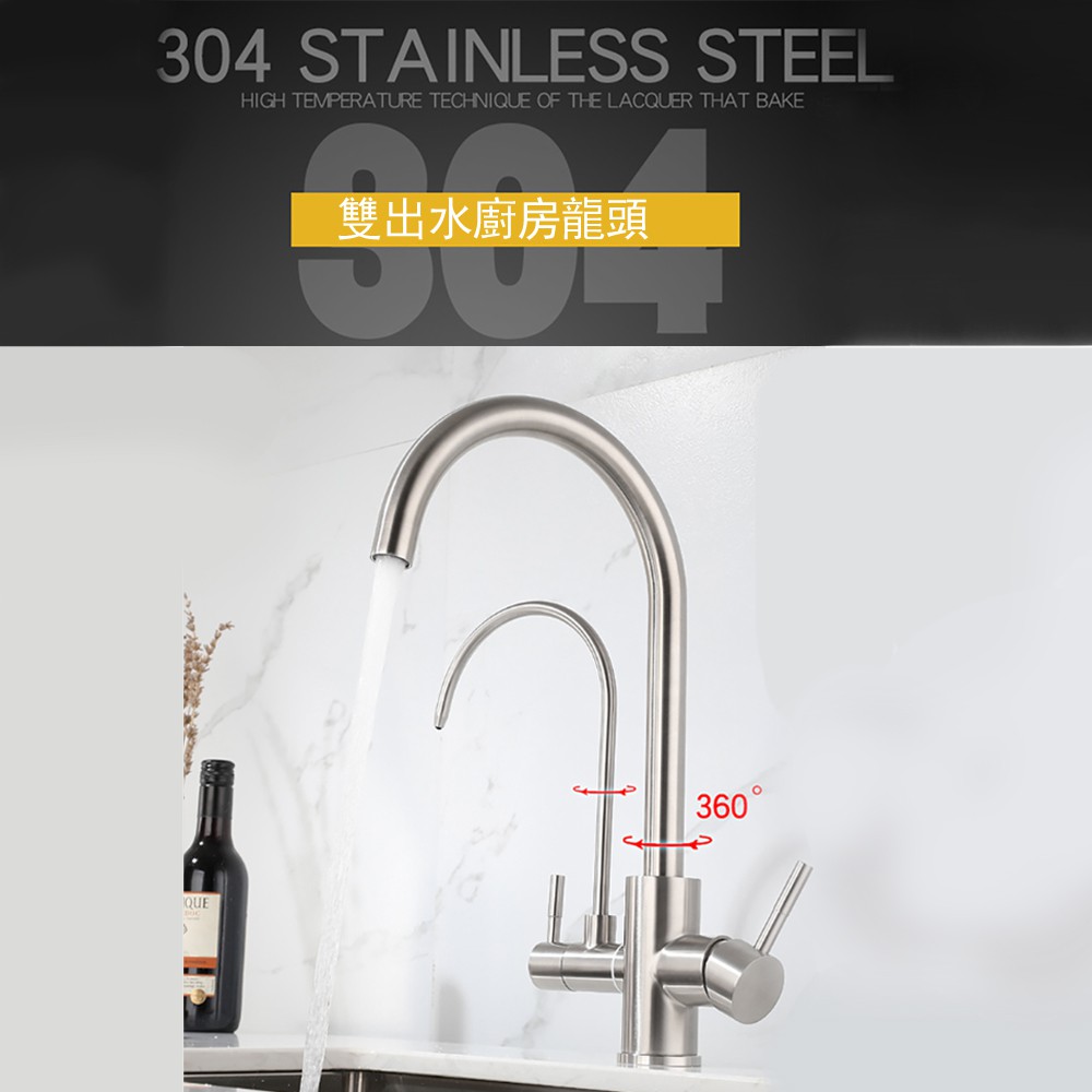 【現貨+保固】水龍頭 淨水管 水龍頭 冷熱水龍頭 304不銹鋼水龍頭 雙控雙出水槽雙頭 淨水龍頭 濾水管A11水龍頭Sinks & Water Taps【鼎峰廚衛旗艦店】