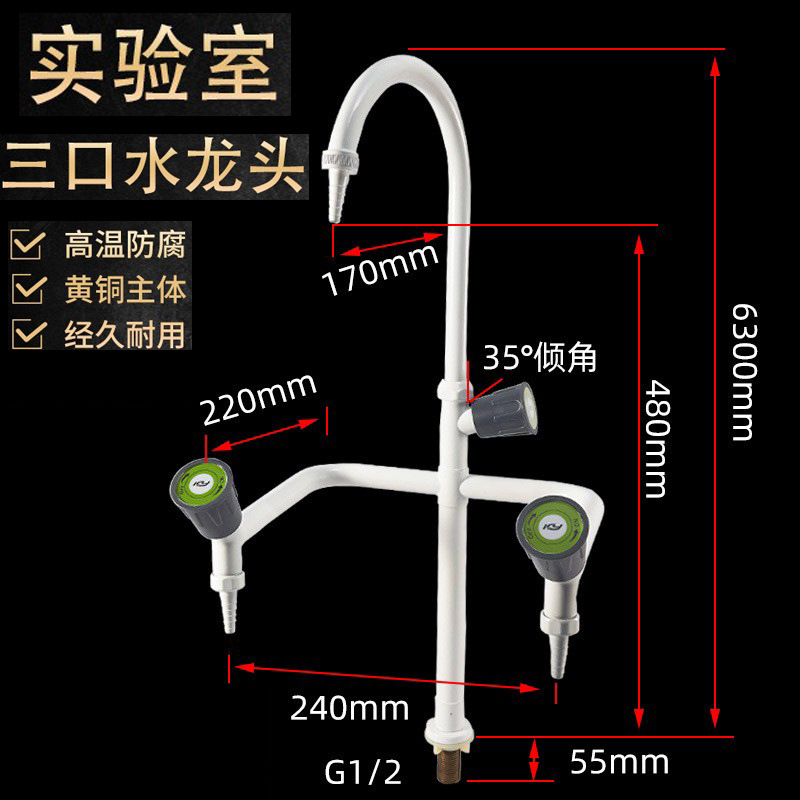 實驗室專用三聯水龍頭三口龍頭全銅龍頭三聯水咀驗廠三聯化驗水嘴三口水龍頭Sinks & Water Taps【鼎峰廚衛旗艦店】