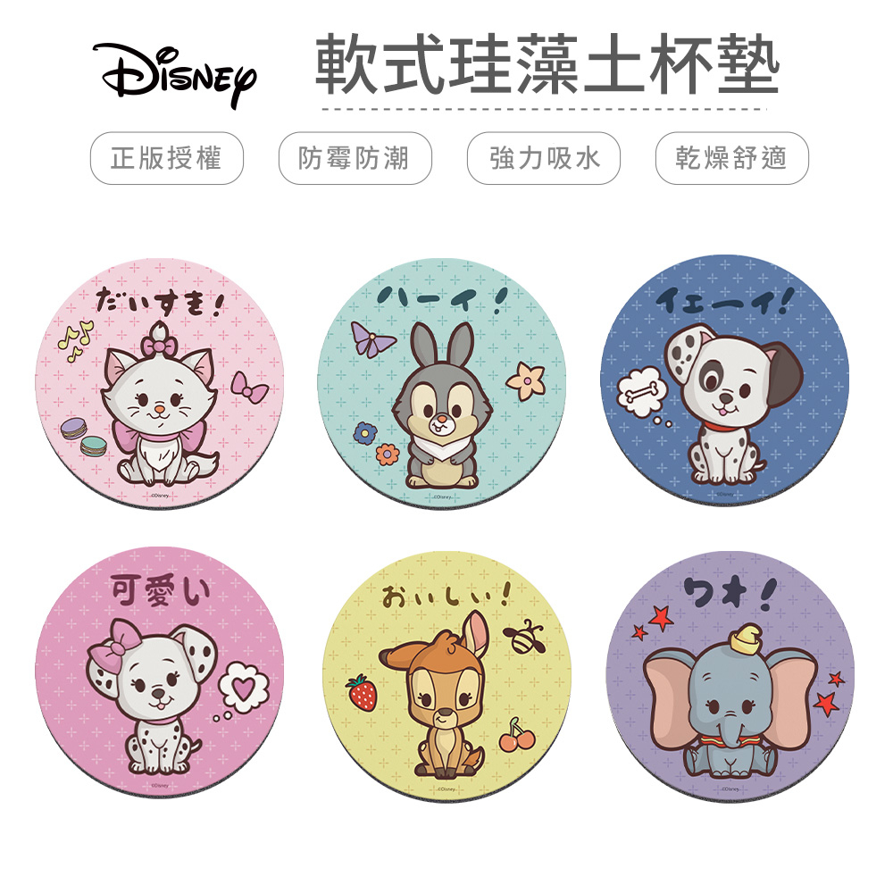 迪士尼 Disney 動物系列 軟式珪藻土杯墊 (2入組) 瑪麗貓 桑普 彭哥 小飛象 小鹿斑比【5ip8】DN0468瑪麗貓和桑普|彭哥和白佩蒂|小鹿斑比和小飛象Placemats & Coasters5IP8居家生活館