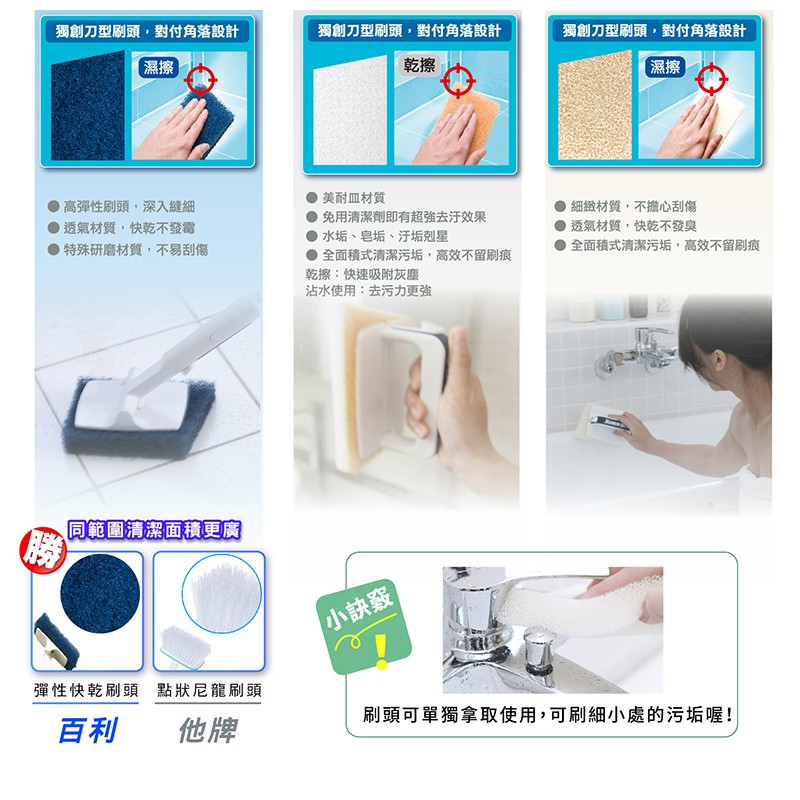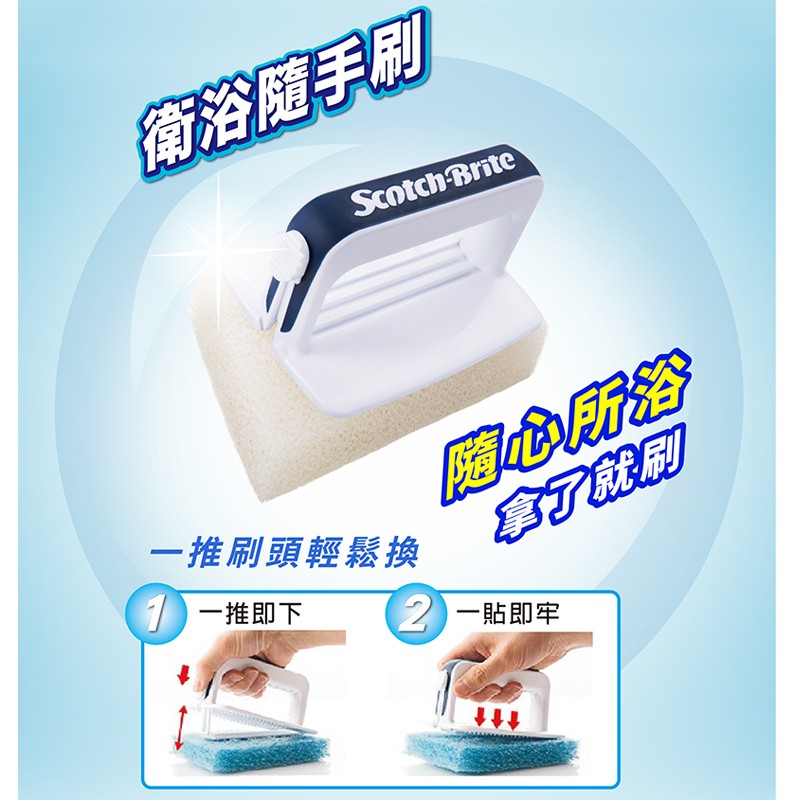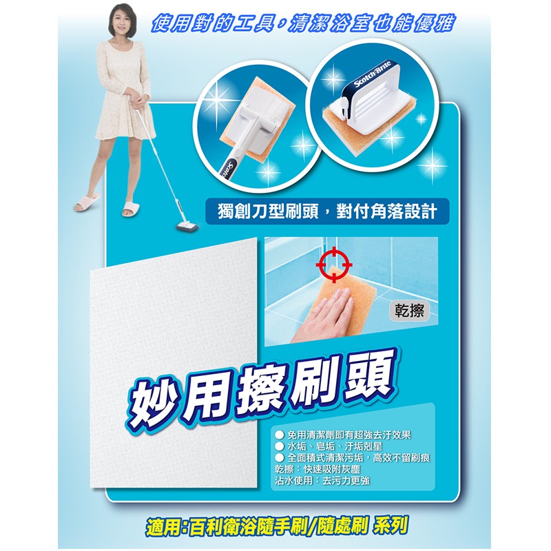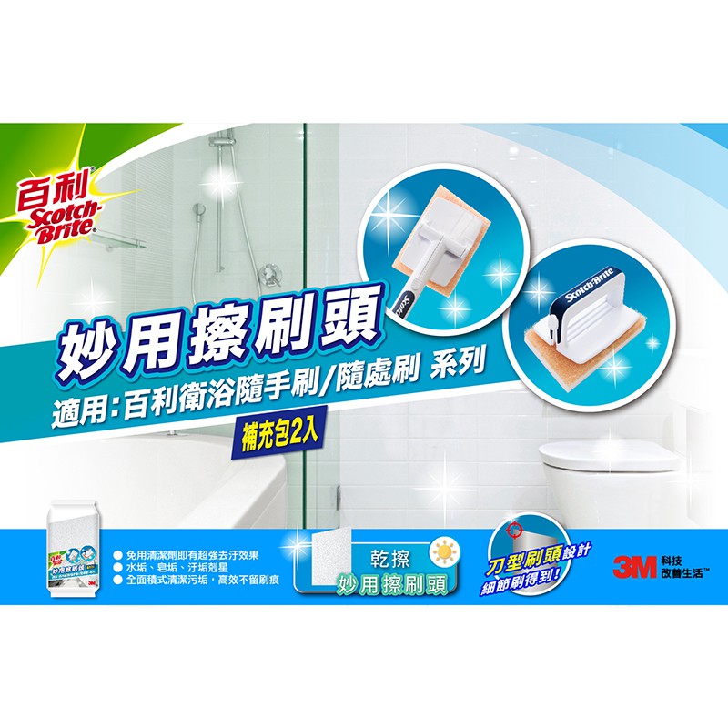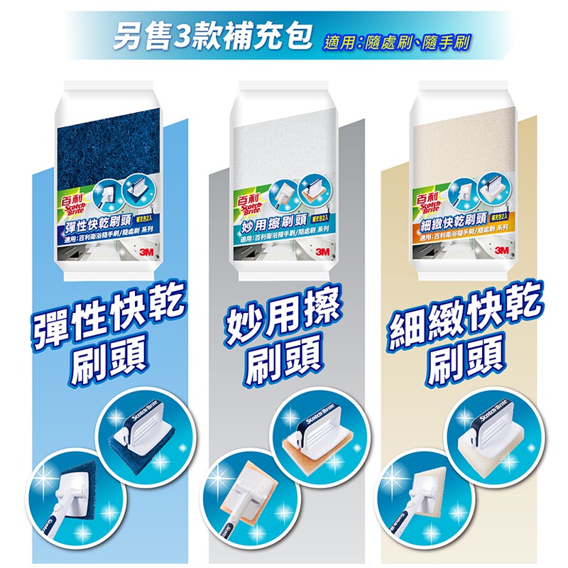 3M 百利 衛浴隨處刷/隨手刷 專用2入補充包乾擦妙用刷頭x2|濕擦彈性刷頭x2|濕擦細緻刷頭x2Cleaning Brushes3M 授權官方旗艦館