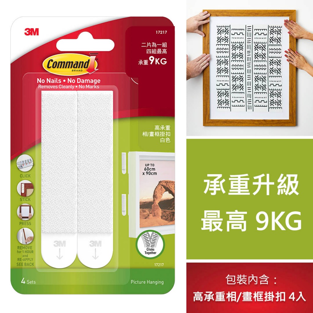3M 17217-TC 無痕高承重相/畫框掛扣-兩色可選 (5入組)白色5個|黑色5個Hooks3M 授權官方旗艦館