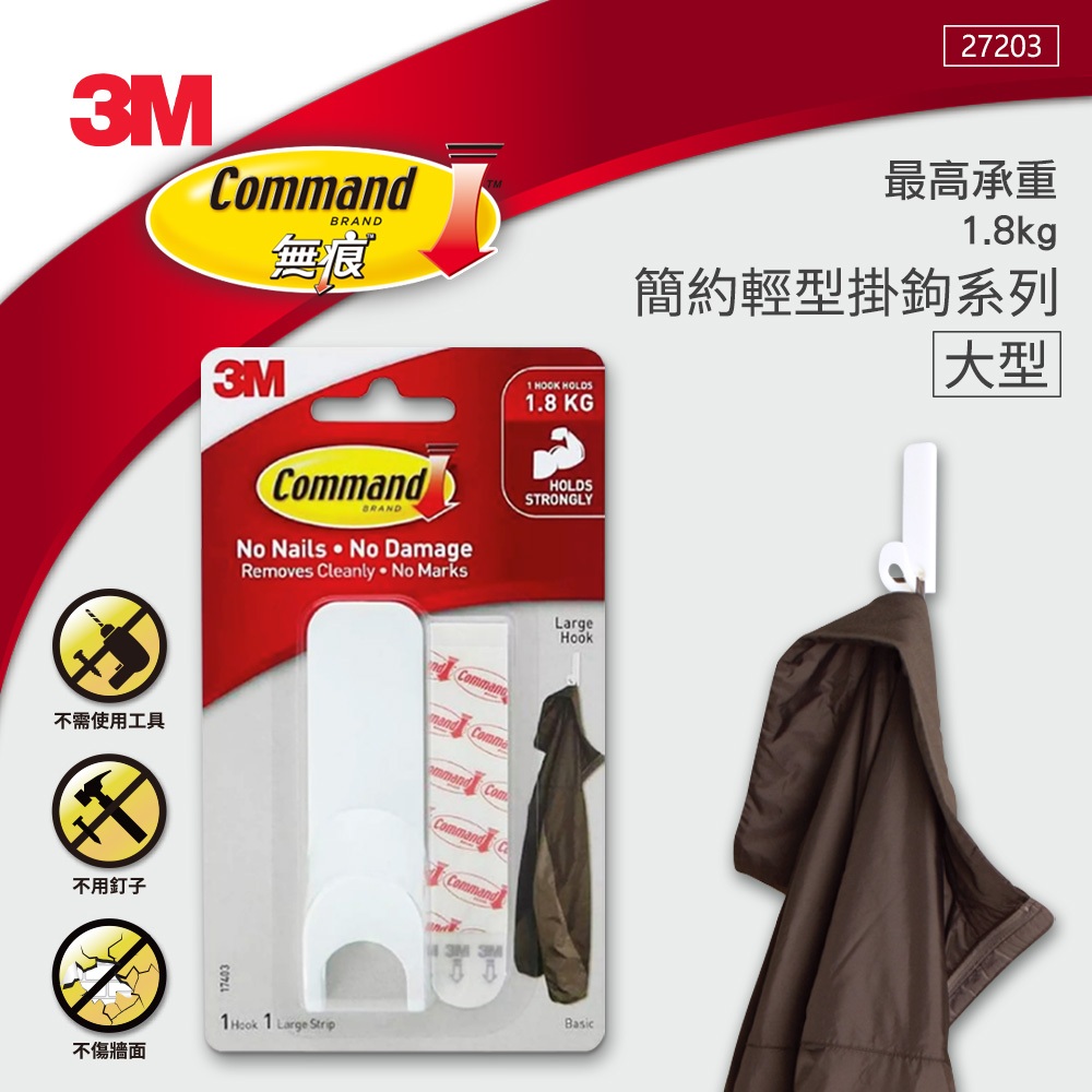 3M 17403ANZ 無痕簡約輕型掛鉤-大型 / 小型大型|小型Hooks3M 授權官方旗艦館