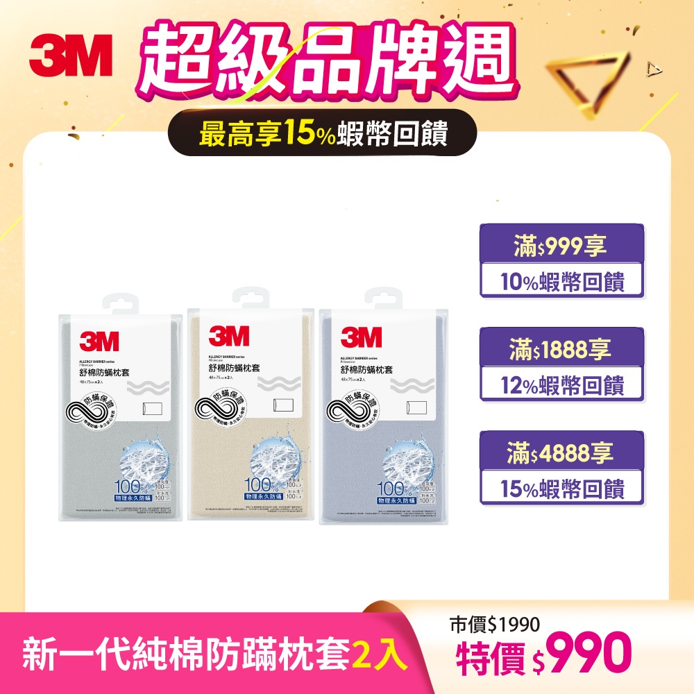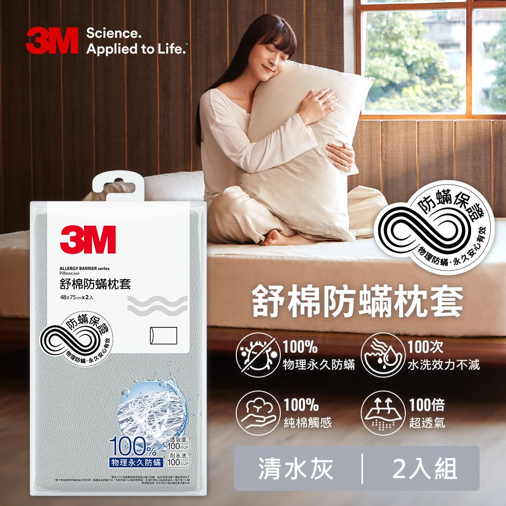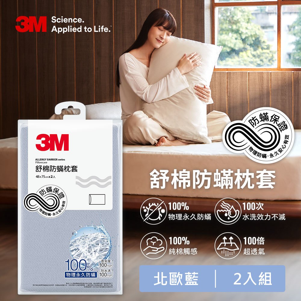 3M新一代純棉防蹣枕套2入組-北歐藍/奶油米/清水灰北歐藍|奶油米|清水灰|★一日限搶-北歐藍★Pillows3M 授權官方旗艦館