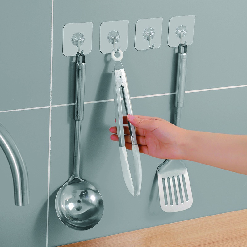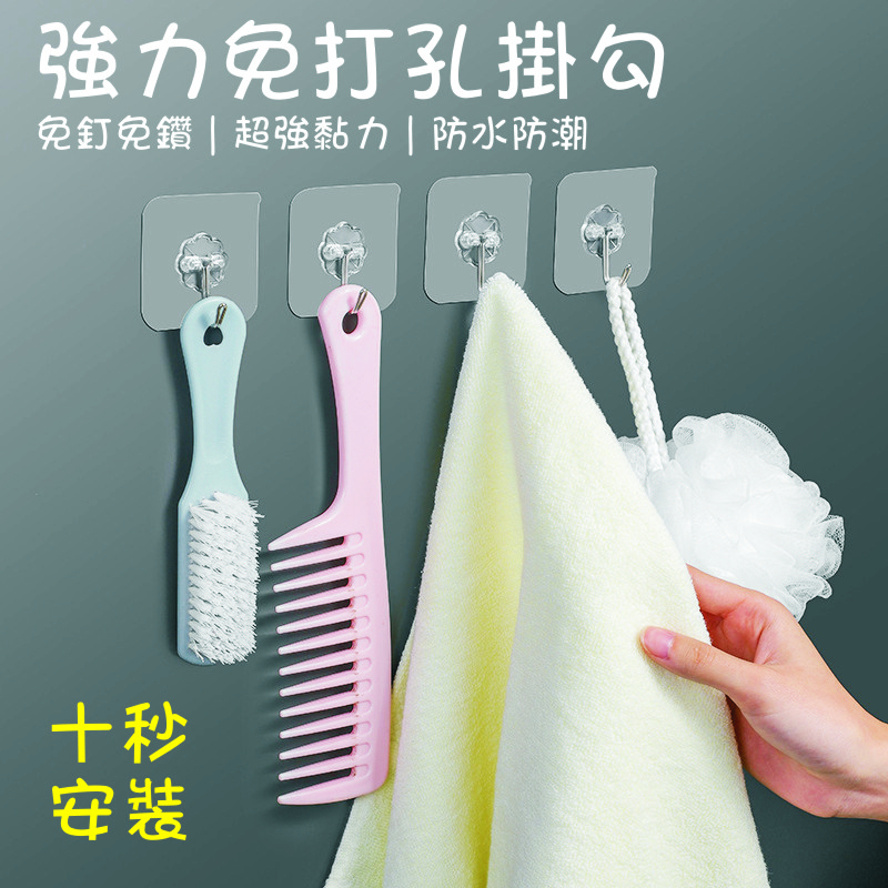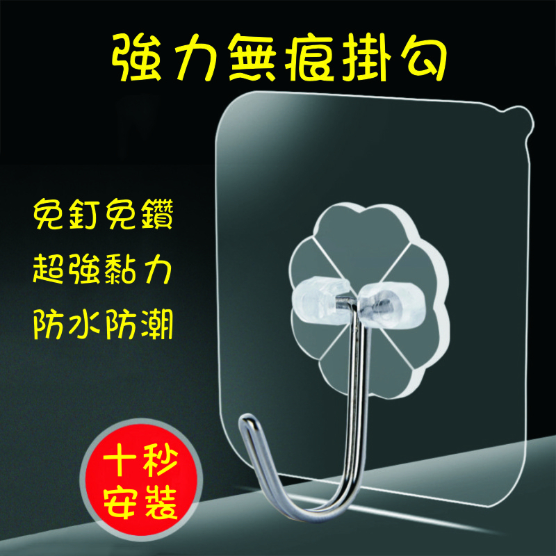 無痕黏貼掛勾 適用室內/浴室平面牆 置物掛鉤 透明貼片掛鉤 掛勾 掛鈎 牆面掛鉤 免打孔掛勾 掛勾貼 可調節掛勾掛鉤HooksADHIL旗艦店