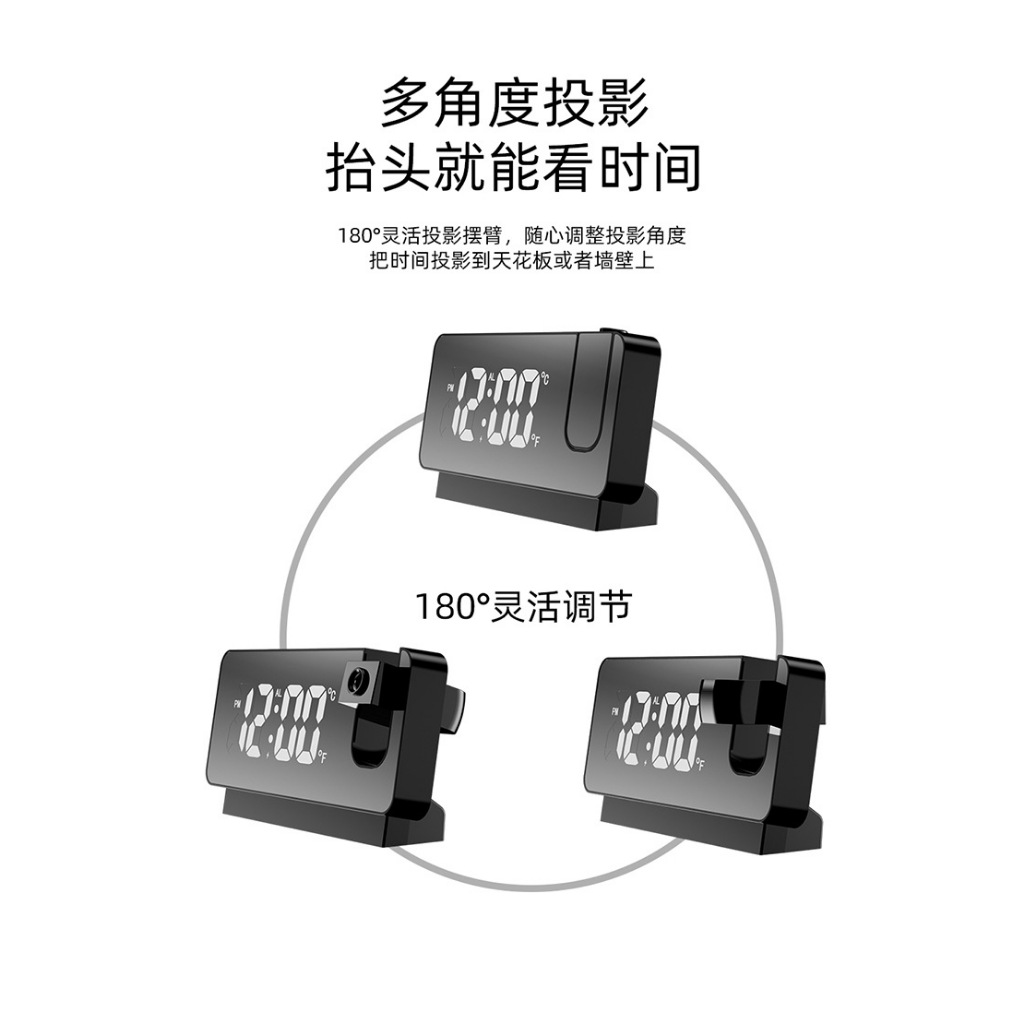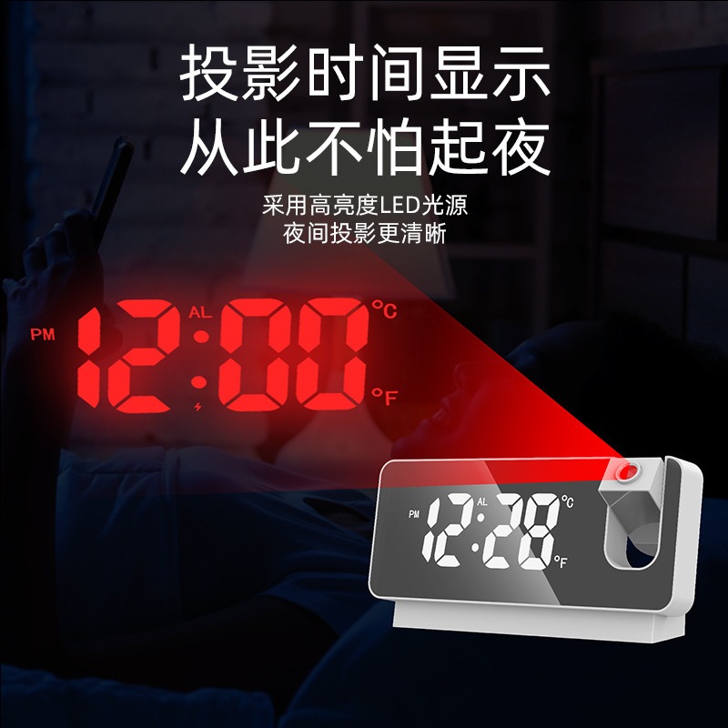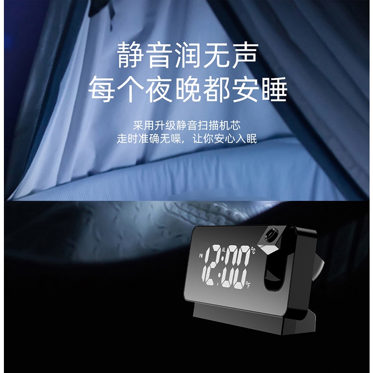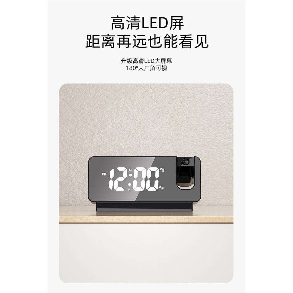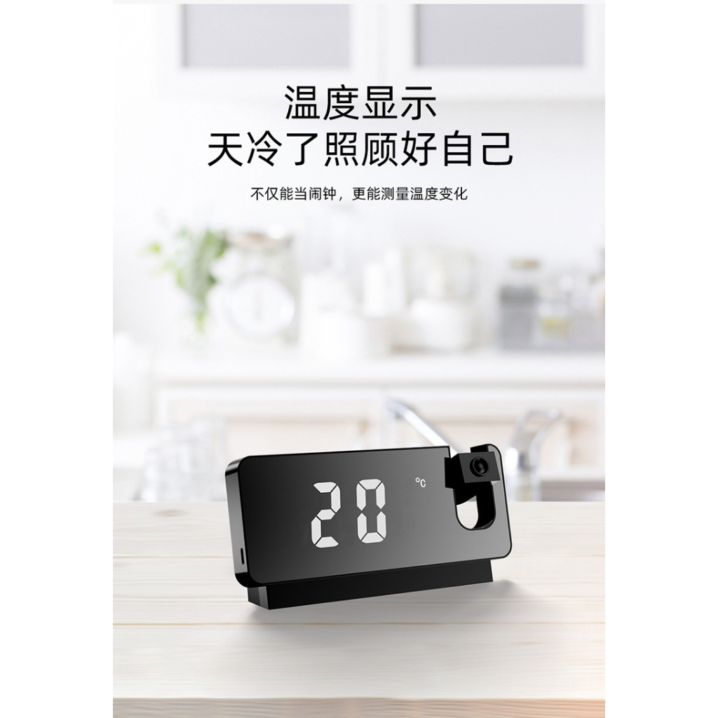 投影電子鬧鐘 時鐘 數顯鬧鐘 投影鬧鐘 數位顯示 鏡面鬧鐘 USB充電 適用辦公/居家/房間等 電子鐘 投影鐘 鏡子鐘黑色|白色ClocksADHIL旗艦店