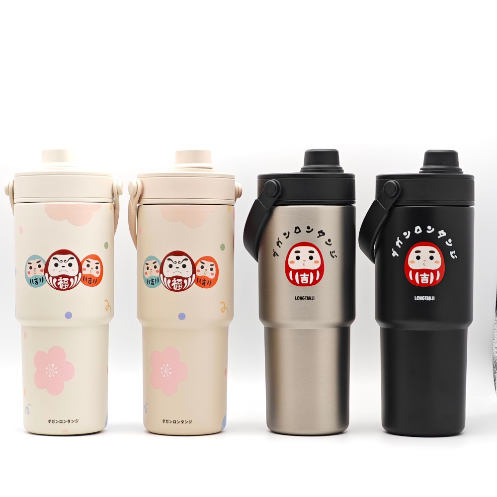 隆探吉手提陶瓷保溫杯 吸管杯 隨行杯 環保杯 達摩不倒翁 福神#白色|#奶茶色|#黑色|#銀色Water Bottles & AccessoriesADA’s SHOPPING FUN