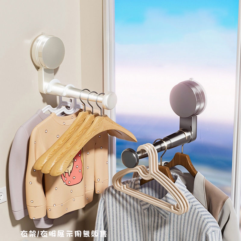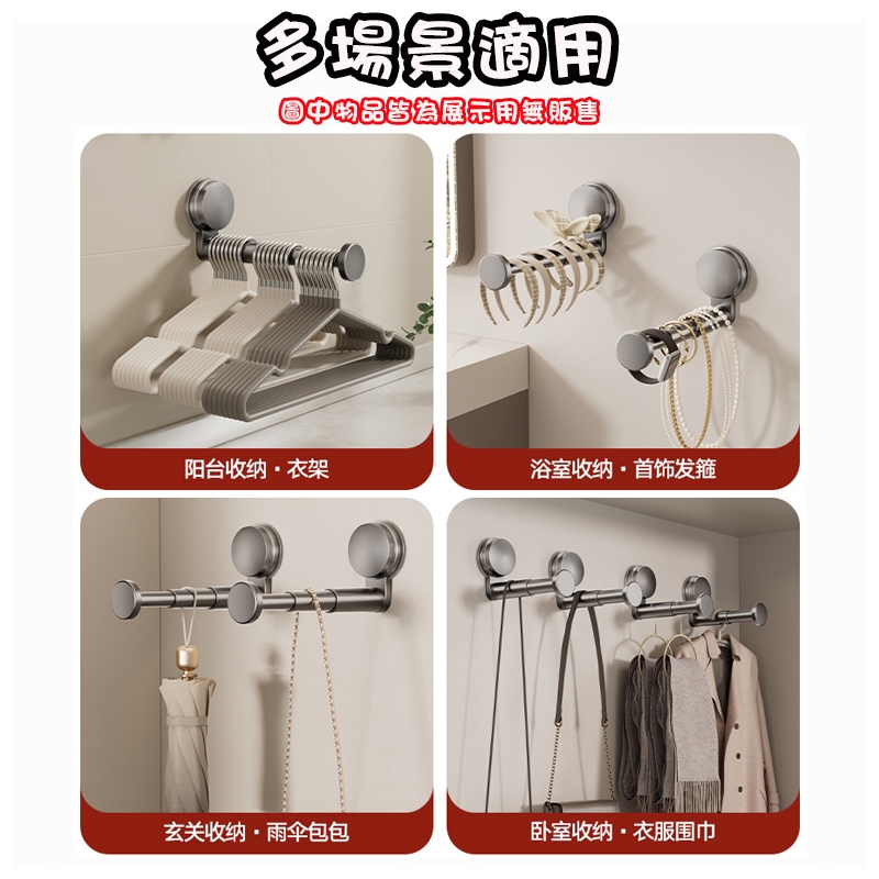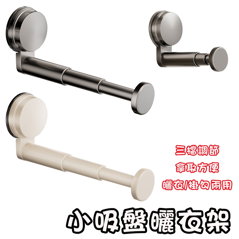 免打孔伸縮曬衣架 伸縮掛勾 小吸盤曬衣架 吸盤曬衣架 無需黏貼 吸盤晾衣架 曬衣架 晾衣桿 吸盤掛勾 壁掛衣架 衣架收納槍灰色|奶白色Hangers & PegsADHIL旗艦店