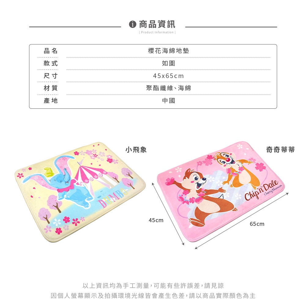 迪士尼 Disney 櫻花季 止滑吸水腳踏墊 地毯 絨毛地墊 奇奇蒂蒂 小飛象【5ip8】GB0490奇奇蒂蒂(粉)|小飛象(黃)Carpets & Rugs5IP8居家生活館