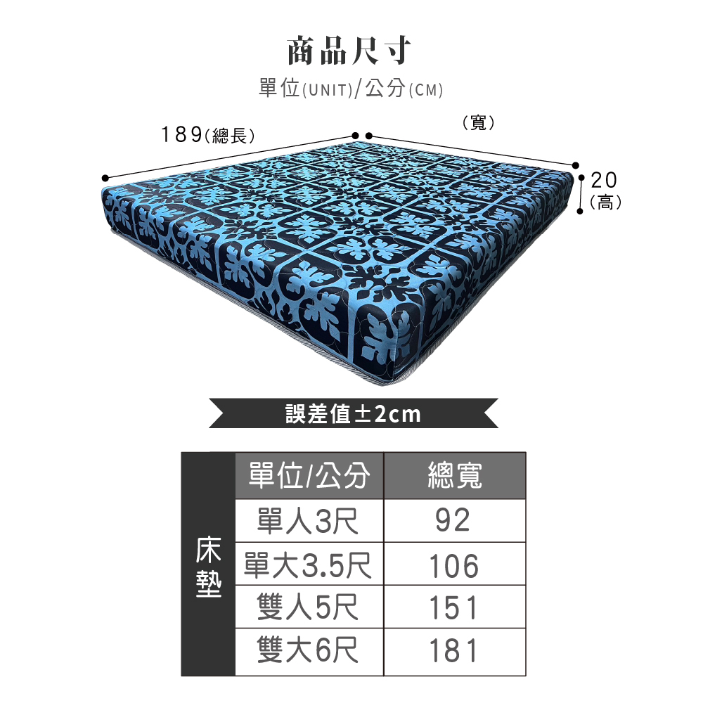 ASSARI-巴洛克藍緹花高迴彈硬式彈簧床墊-單人3尺/單大3.5尺/雙人5尺/雙大6尺雙人5尺|雙大6尺|單人3尺|單大3.5尺MattressesASSARI 鑫億家具