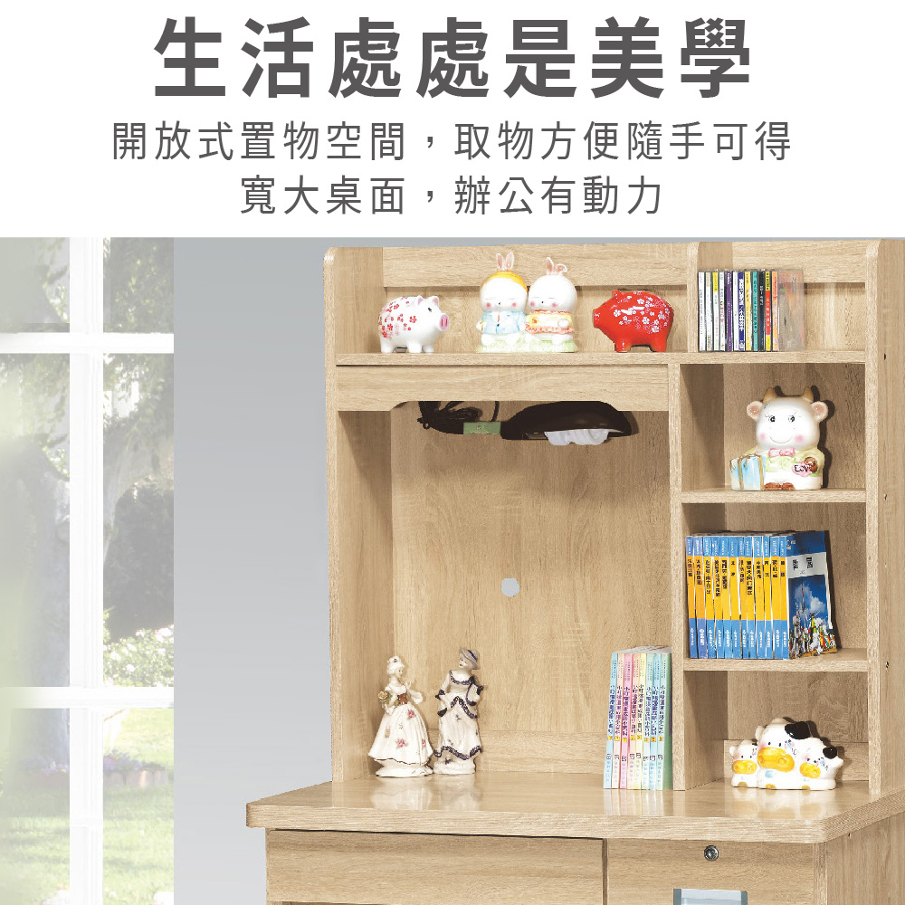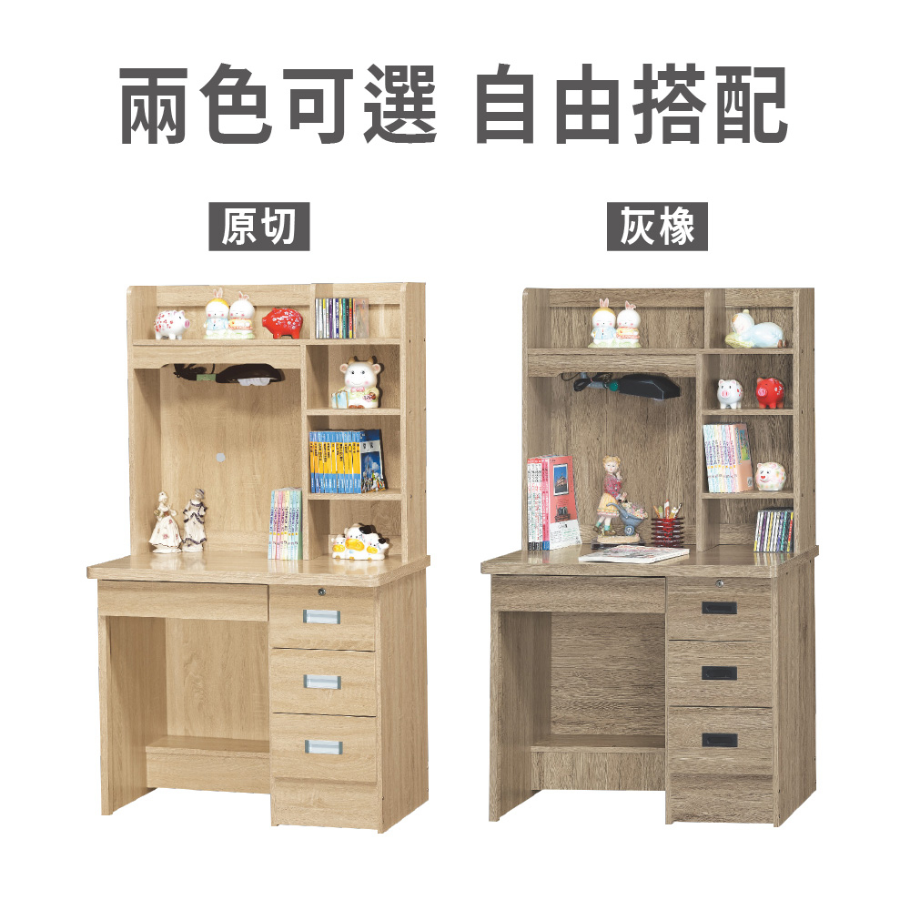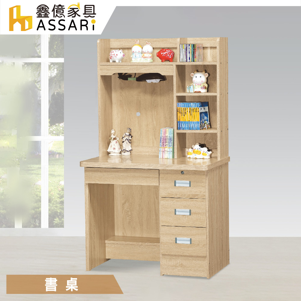 ASSARI-海薇3尺四抽書桌全組(寛90x深57x高158cm)灰橡|原切Desks & TablesASSARI 鑫億家具