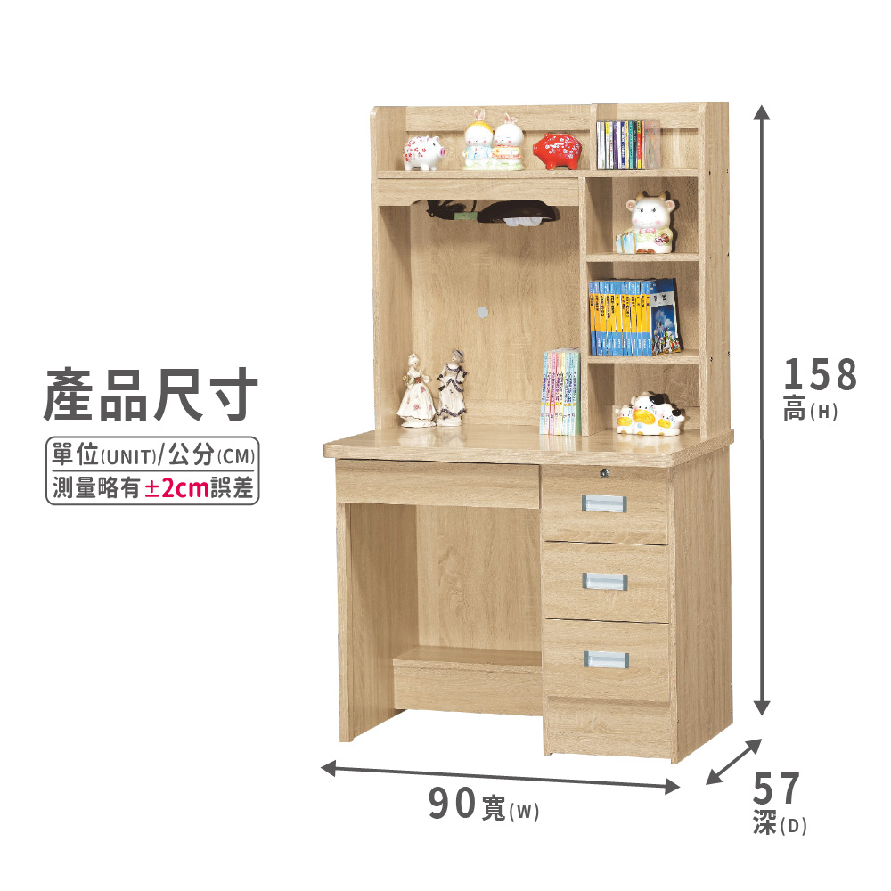 ASSARI-海薇3尺四抽書桌全組(寛90x深57x高158cm)