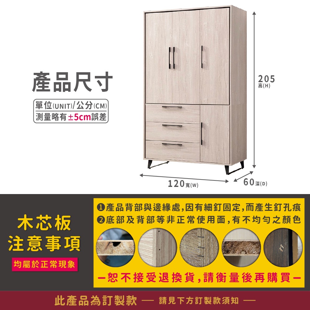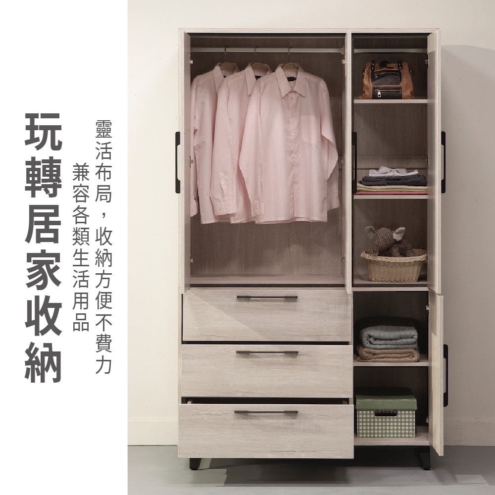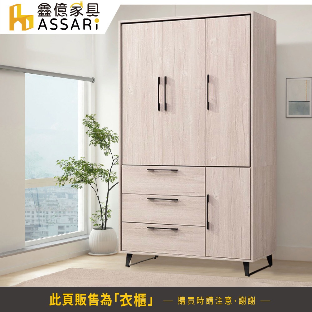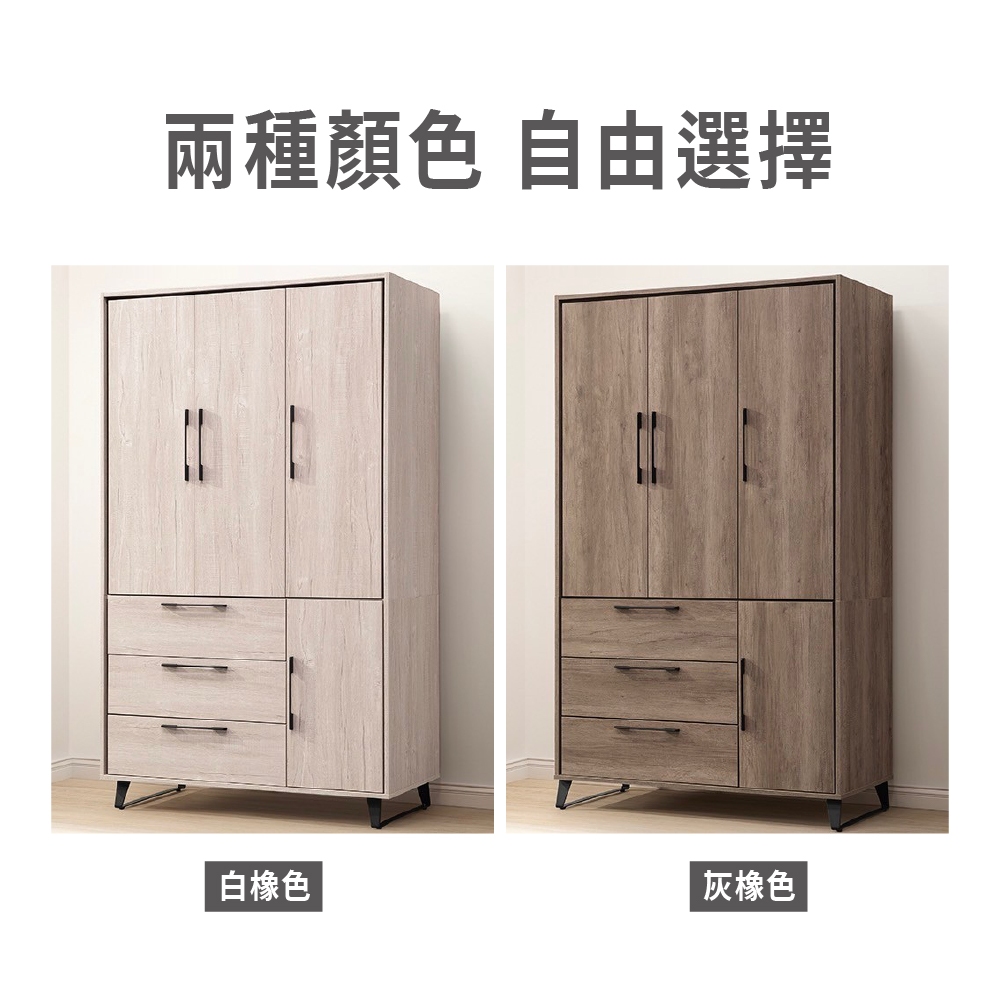 ASSARI-莉瑪4尺四門三抽衣櫃(寬120x深60x高205cm)白橡|灰橡WardrobesASSARI 鑫億家具
