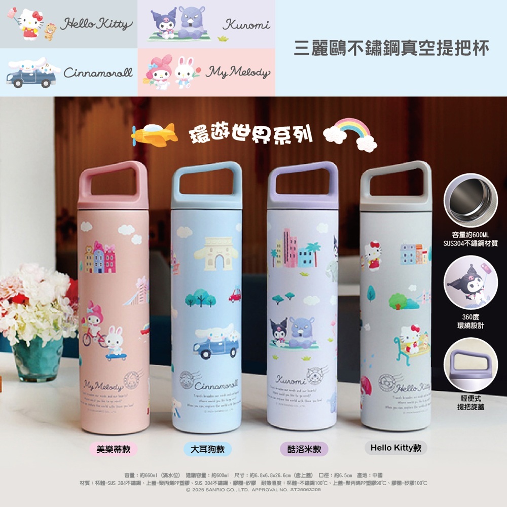 【Sanrio 三麗鷗】環遊世界系列-不鏽鋼真空提把保溫杯660ml-HELLO KITTY/酷洛米/大耳狗/美樂蒂HELLO KITTY|酷洛米|大耳狗|美樂蒂Water Bottles & Accessories【Hello生活館】