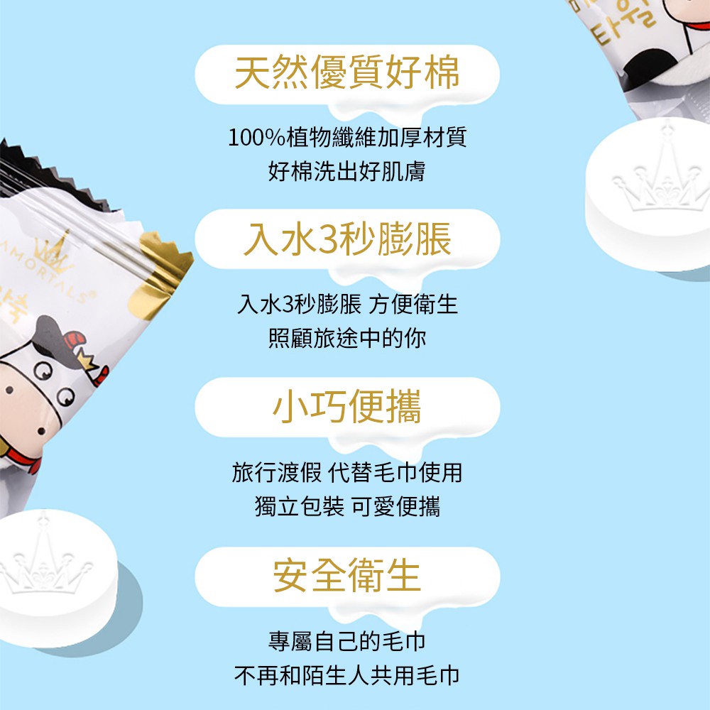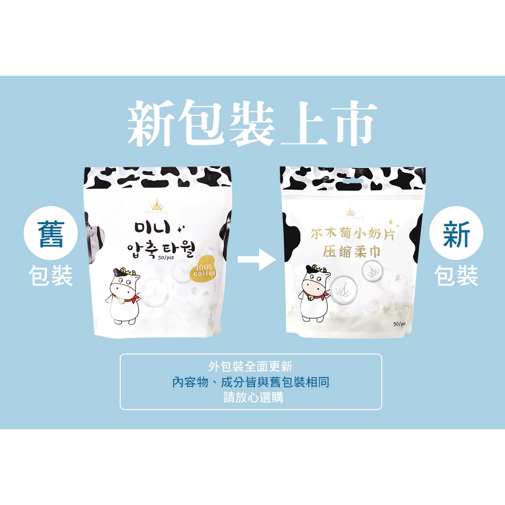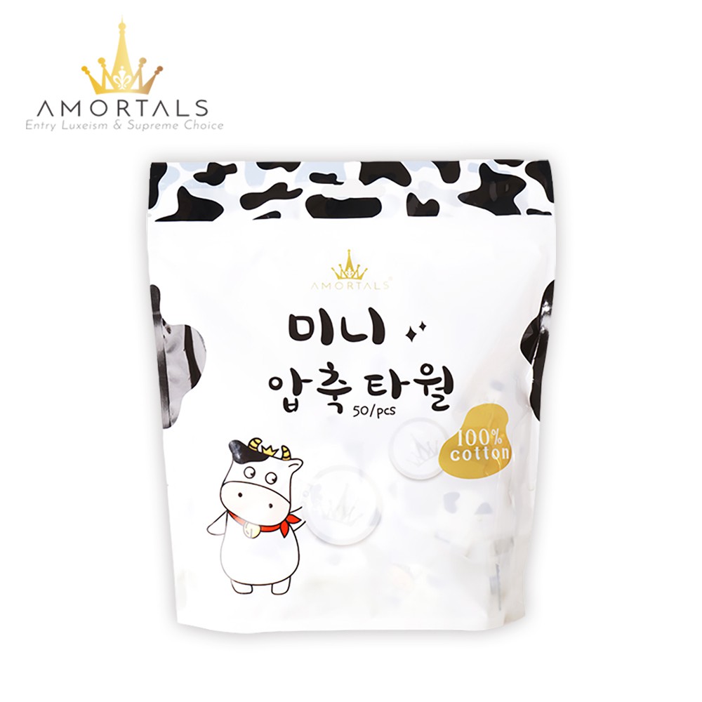 【AMORTALS爾木萄品牌 台灣代理供貨】小乳牛長纖維壓縮毛巾 (50粒)